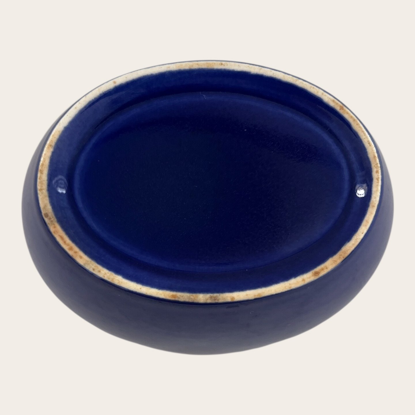 Royal Copenhagen, Aluminia, Ursula, Oval skål, Blå #571, 10,5cm lang, 8cm bred, 6cm høj, Design Ursula Munch Petersen *Pæn stand*