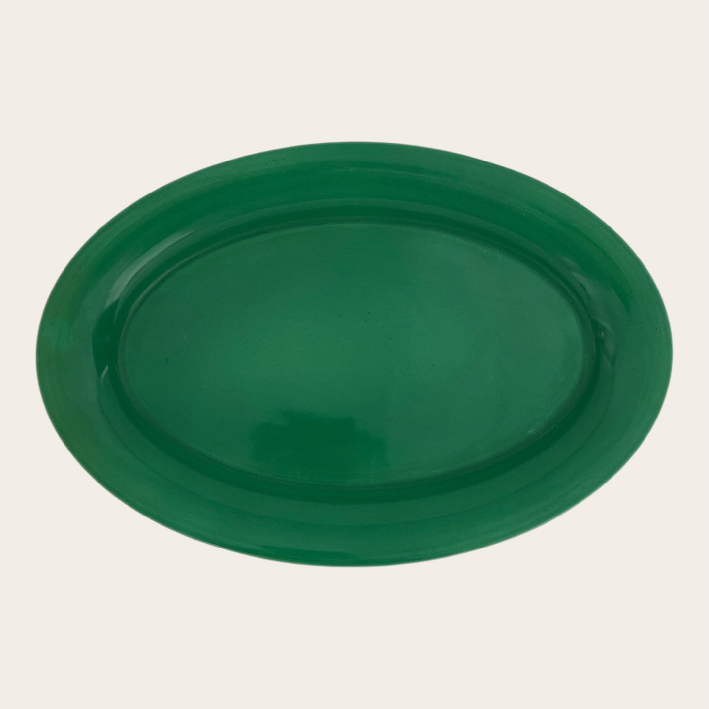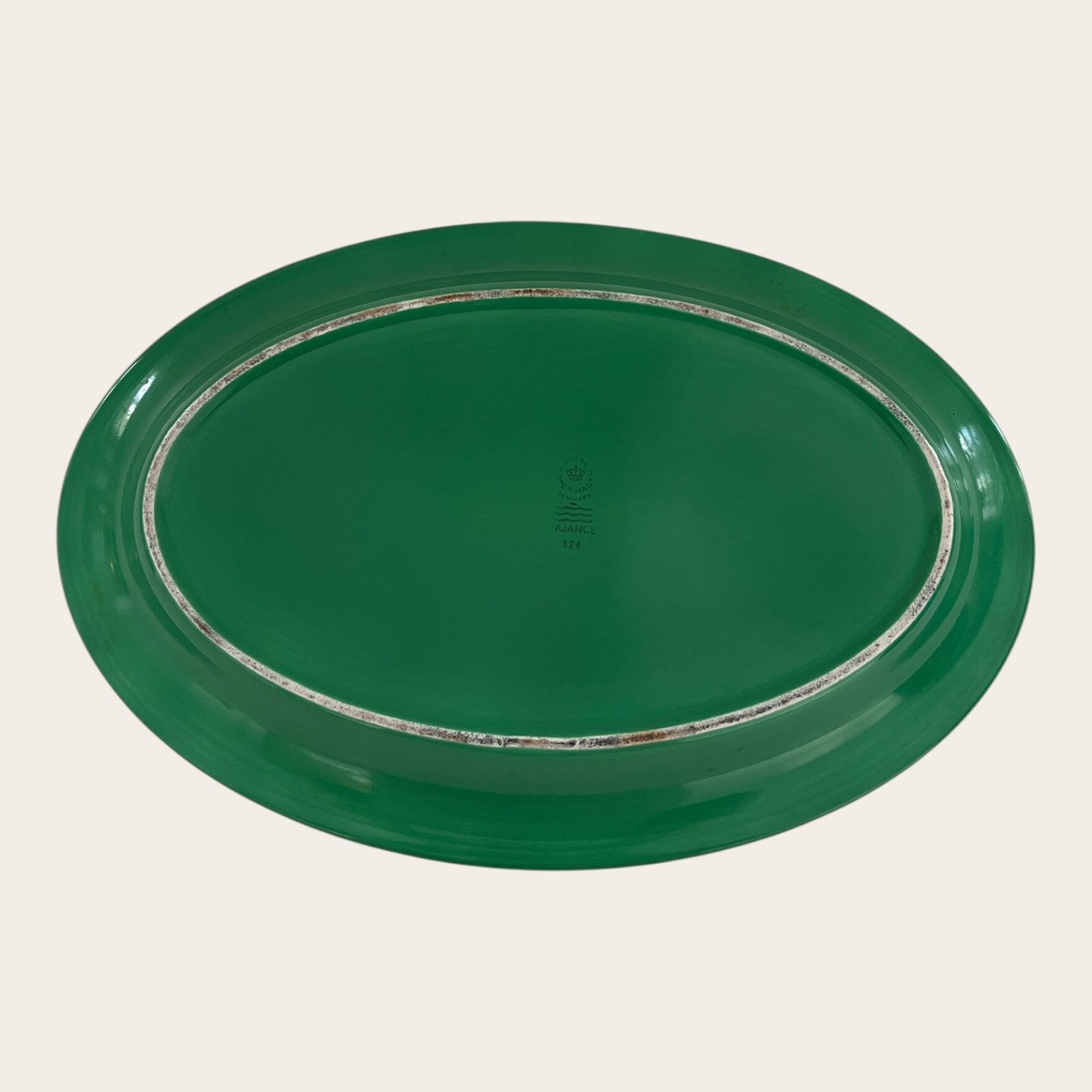 Royal Copenhagen, Aluminia, Tallerken, Grøn #624, 1. sortering, 33,5cm lang, 22cm, Design Ursula Munch Petersen *Pæn stand med lette brugsspor*