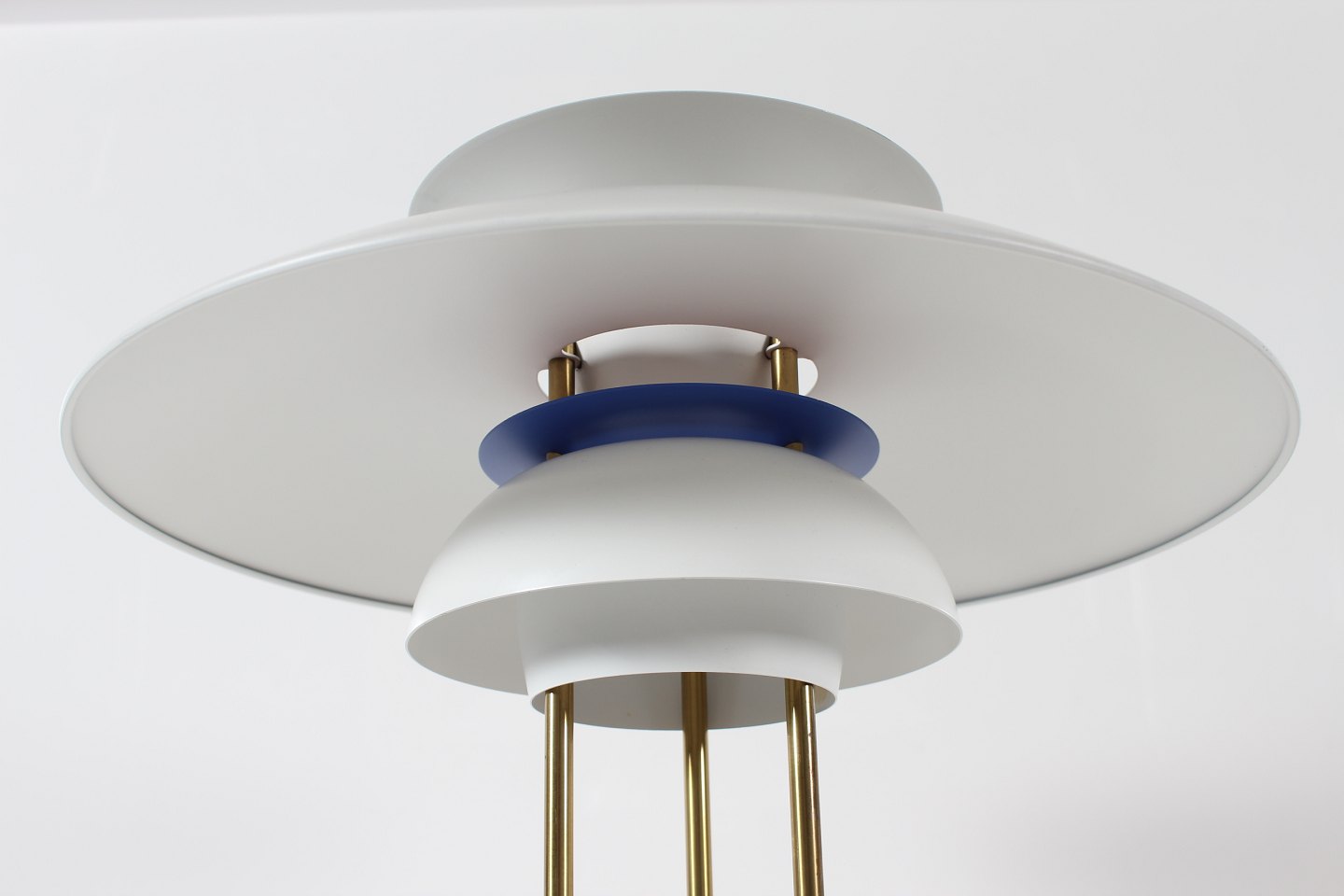 m/fod af messing og hvidlakerede skærme