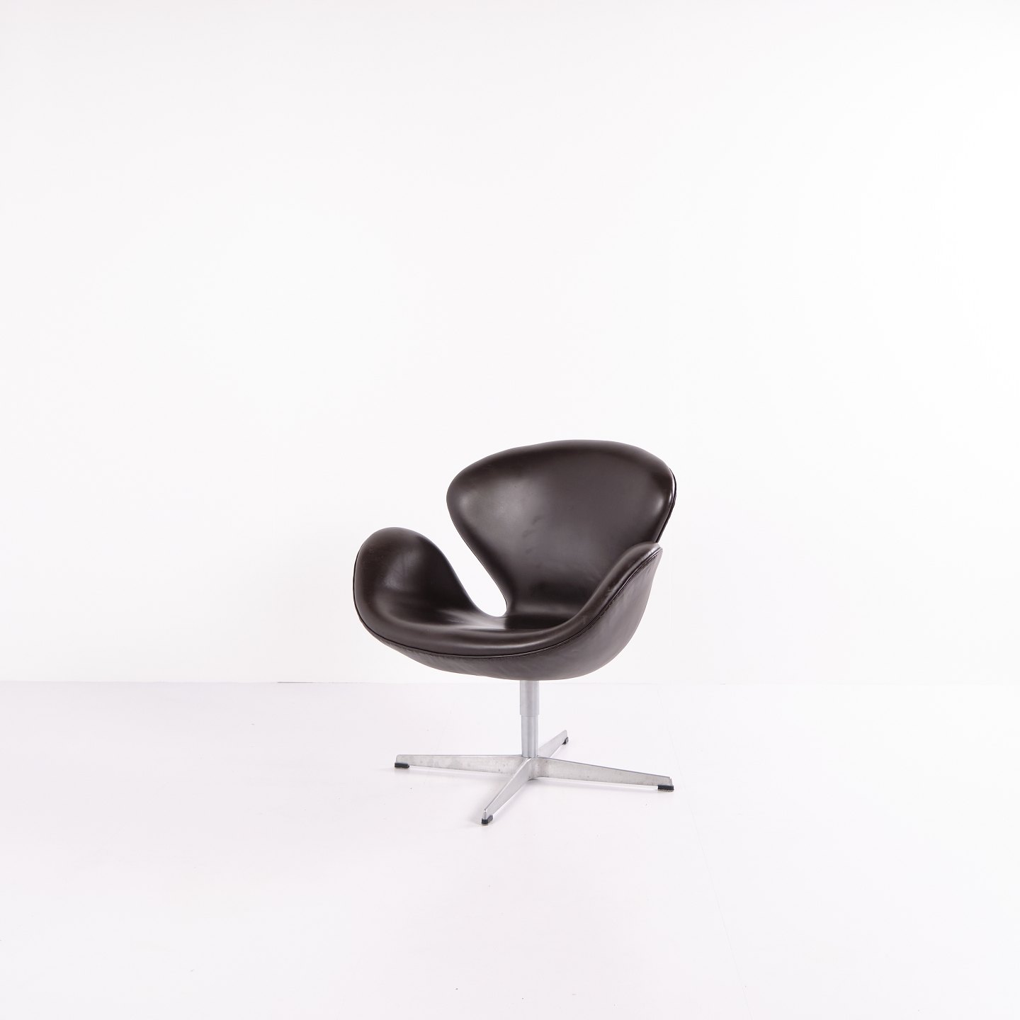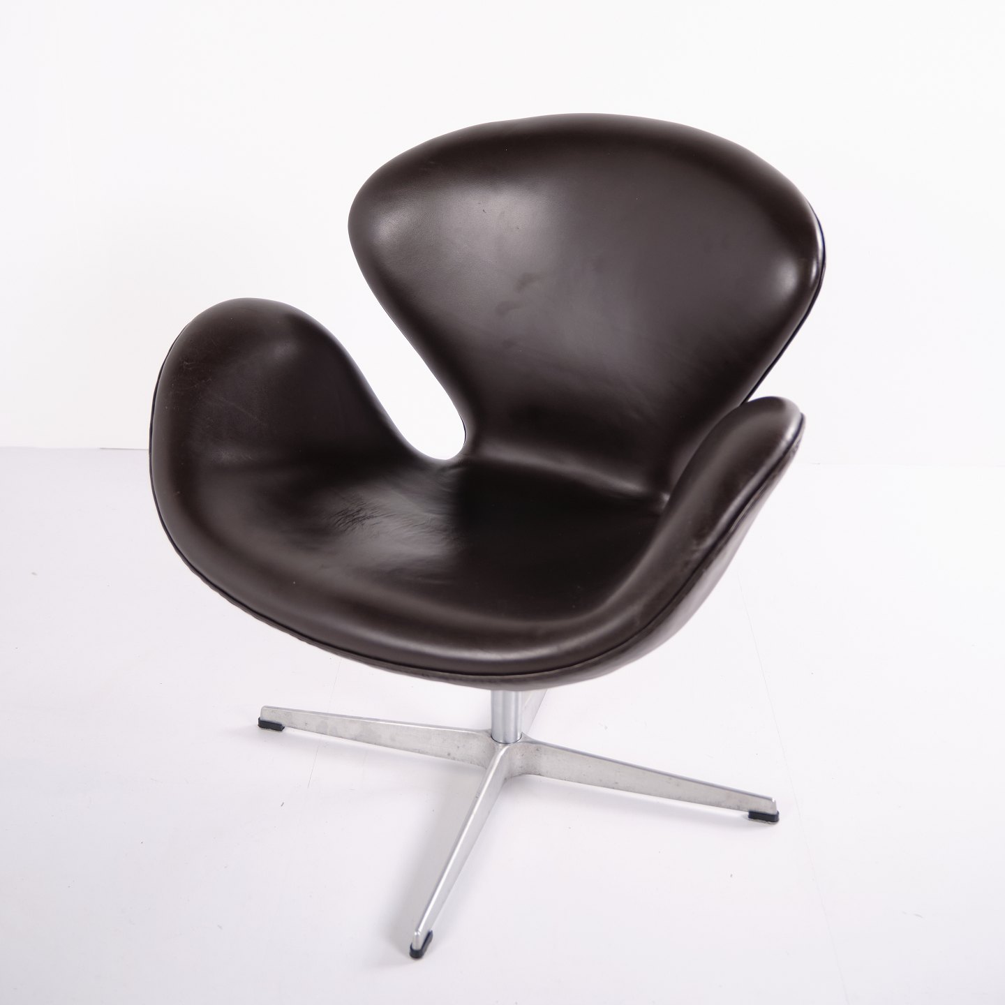 Svanen lænestol model 3320 af Arne Jacobsen for Fritz Hansen. Brunt læder. Produceret 2007. Ikonisk dansk designklassiker.