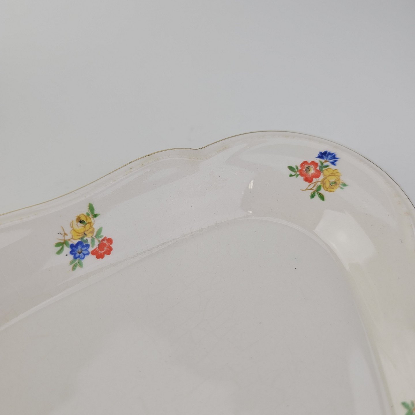 Anna Sofie er hvid fajance dekoreret med guld kant og små farverige blomster