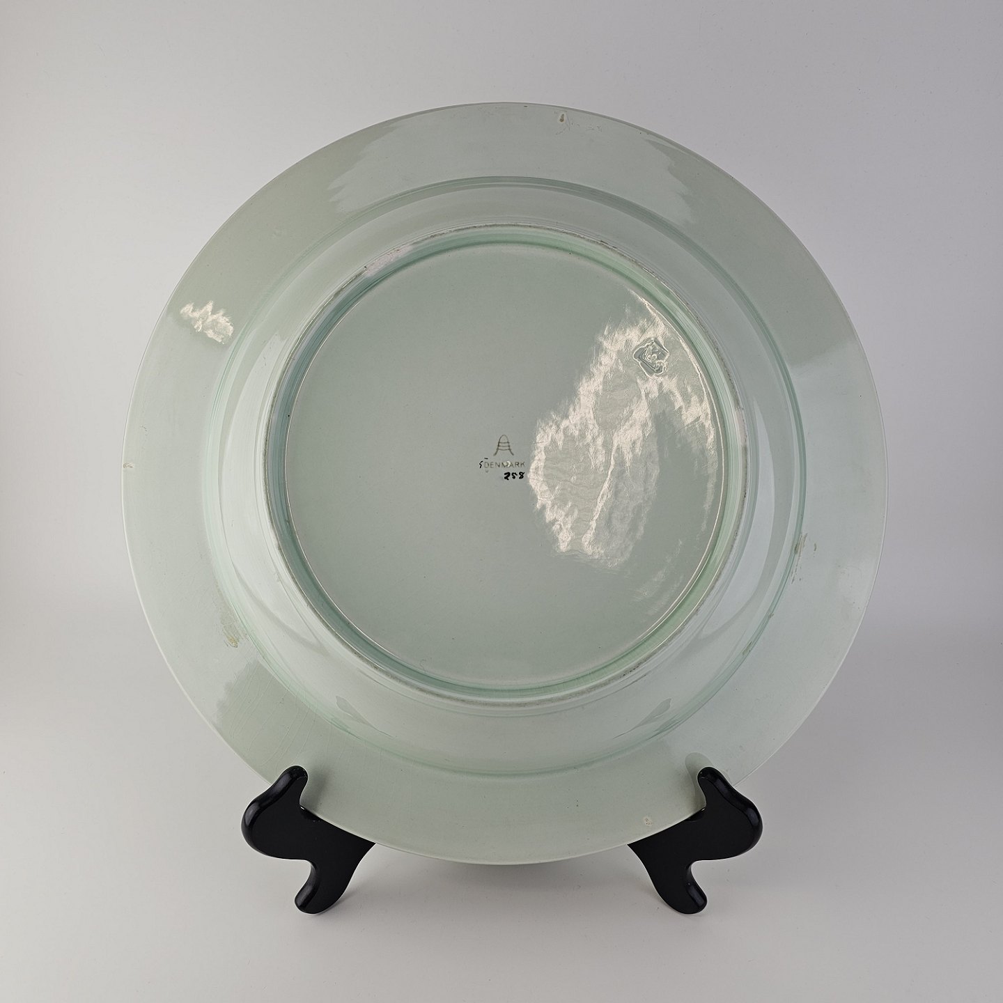 Stel i lysegrøn fajance med natur dekoration og flettet kant