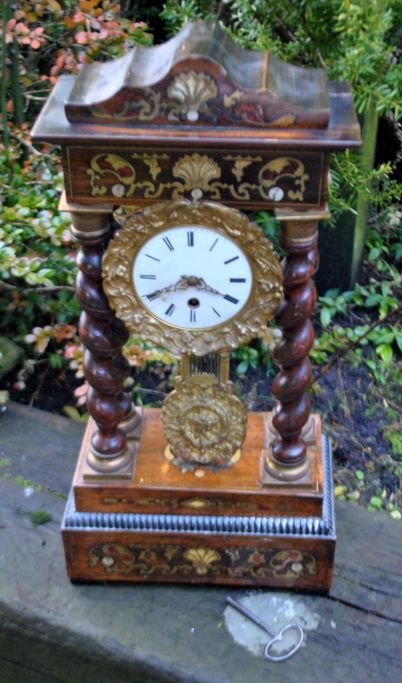 Søjleur i ibenholt træ, messing og med intarsia, ca. 1830. Frankrig.