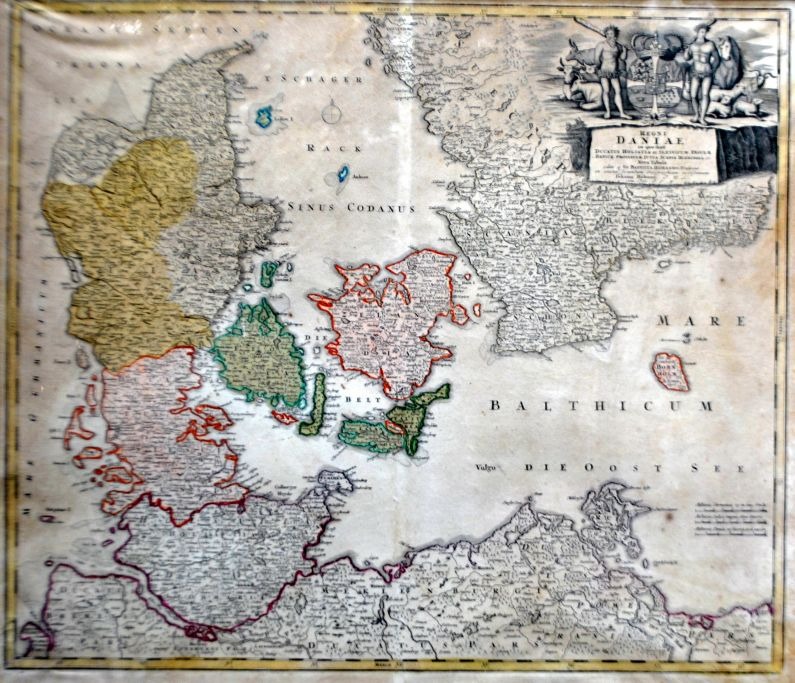 Johann Baptist Homann (1663 - 1724) Tyskland: Generalkort over Danmark. 1714.