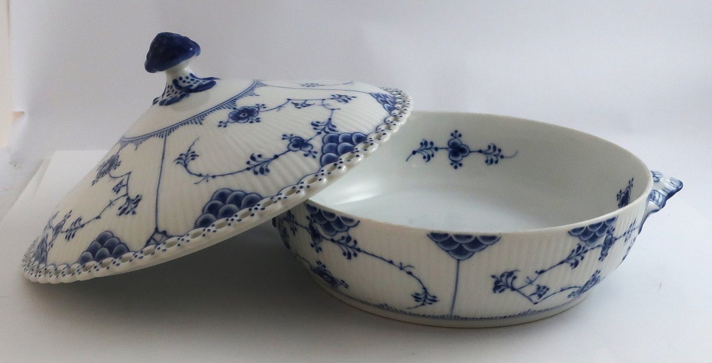 Royal Copenhagen. Musselmalet, helblonde. Lågfad, rundt. Model 1128. Diameter 20 cm. (1 sortering)