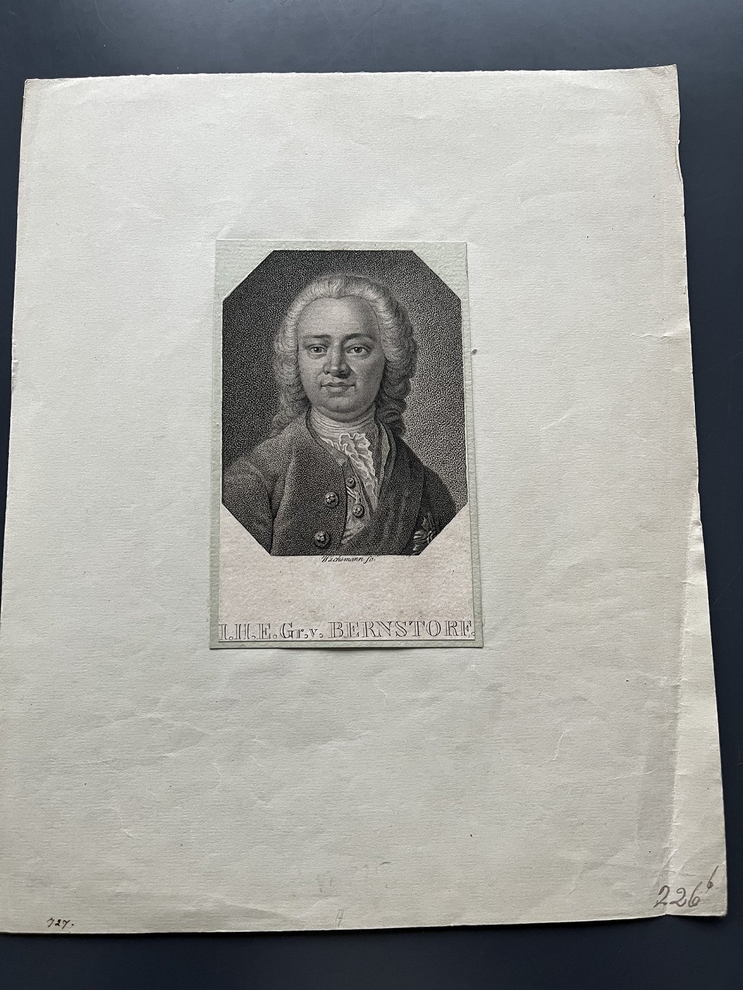 Kobberstik af Anton Wachsmann - Portræt af Lensgreve Johan Hartwig Ernst von Bernstorff.