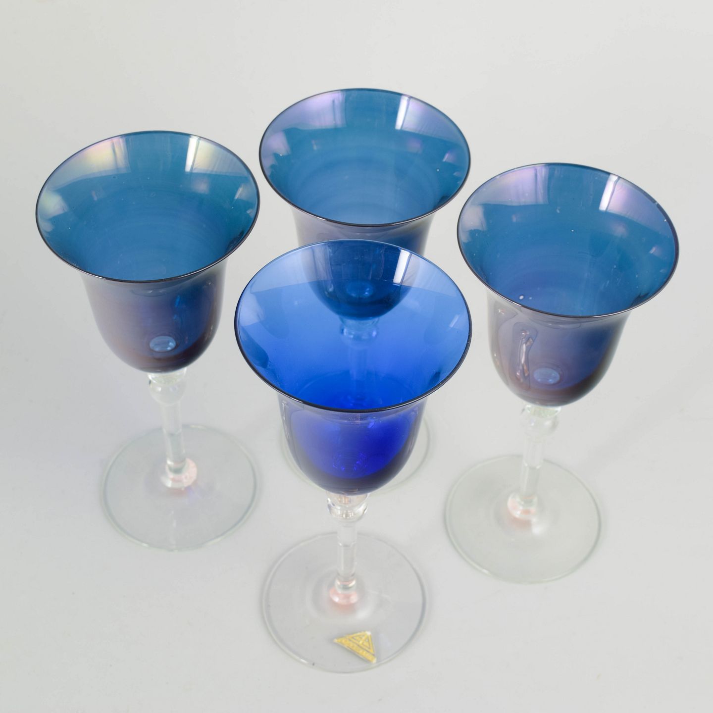 Sæt bestående af fire håndlavede champagneglas i kunstglas med slank cuppa og let, elegant stilk. Glassene er udført i et klassisk og balanceret formsprog, karakteristisk for svensk glasproduktion i 1960’erne og 70’erne, med fokus på funktion, proportion og klarhed i udtrykket.