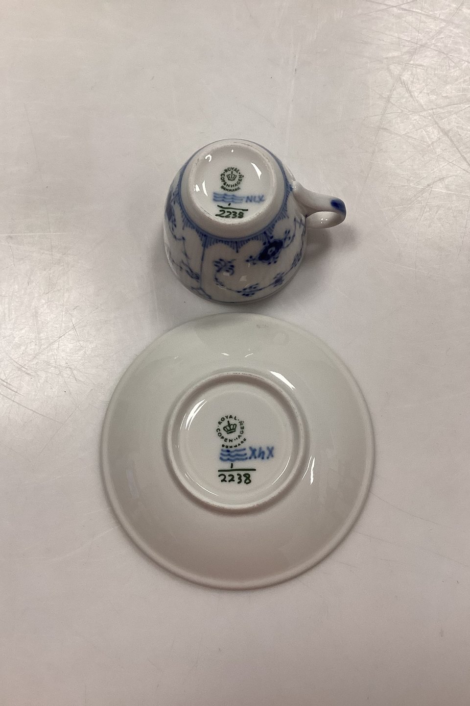 Royal Copenhagen Musselmalet Riflet Hotel Kaffekop med underkop No. 2238