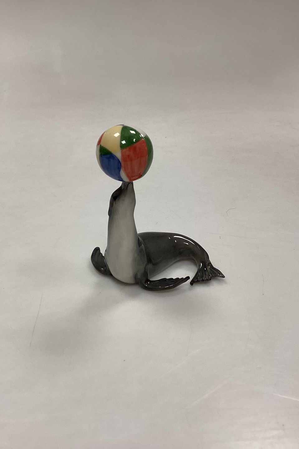 Royal Copenhagen Figur - Søløve med Bold No. 202. Figur fra Mini Cirkus Kollektionen. Designet af Svend Vestergaard fra 2015-2019.