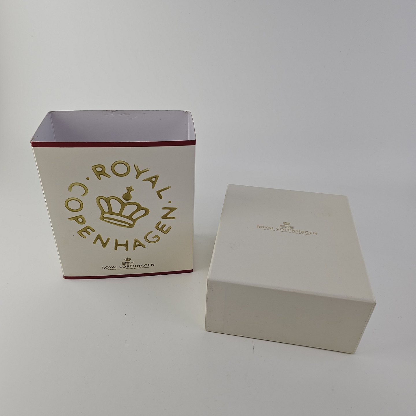 Juleornamenter i glas med motiv af et hjerte og en trompet med rødt bånd til ophæng
