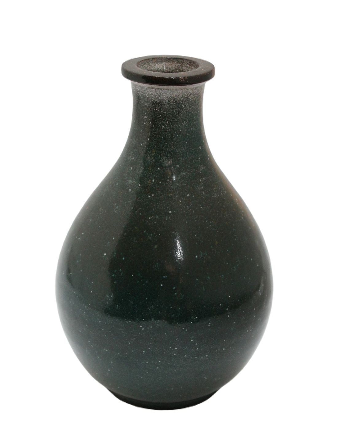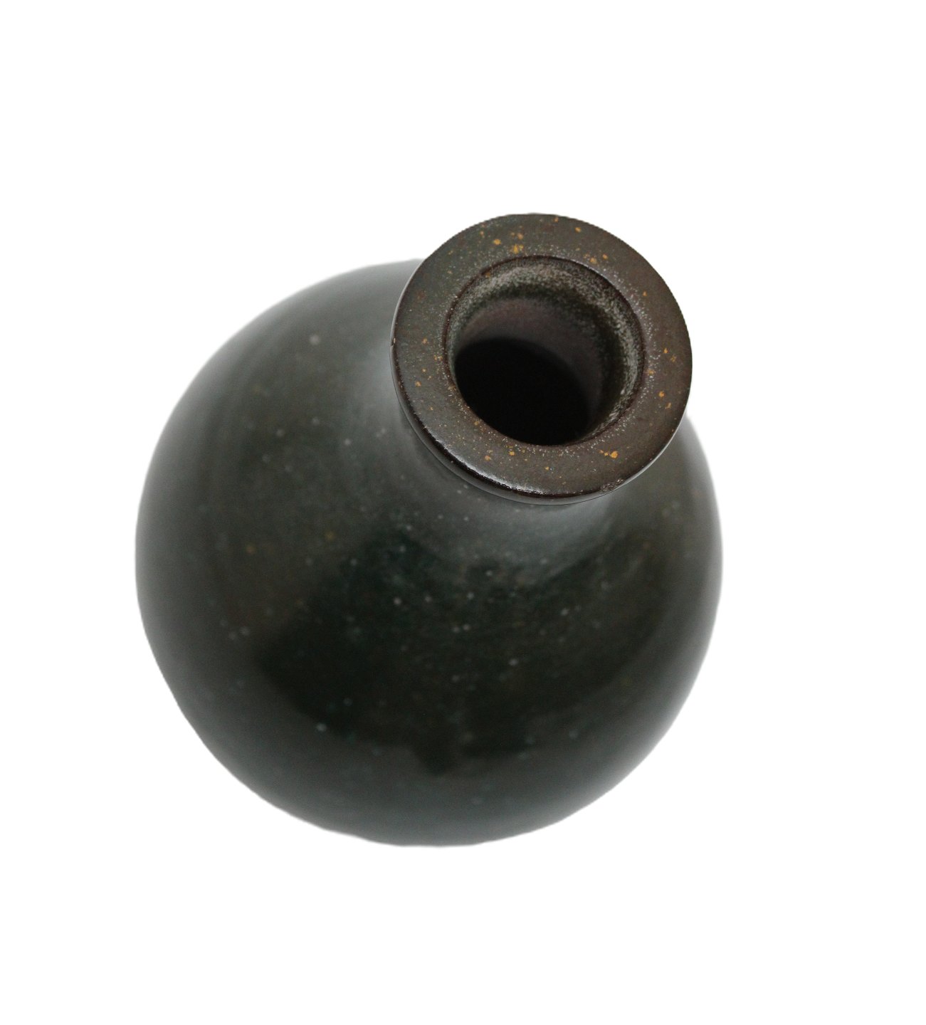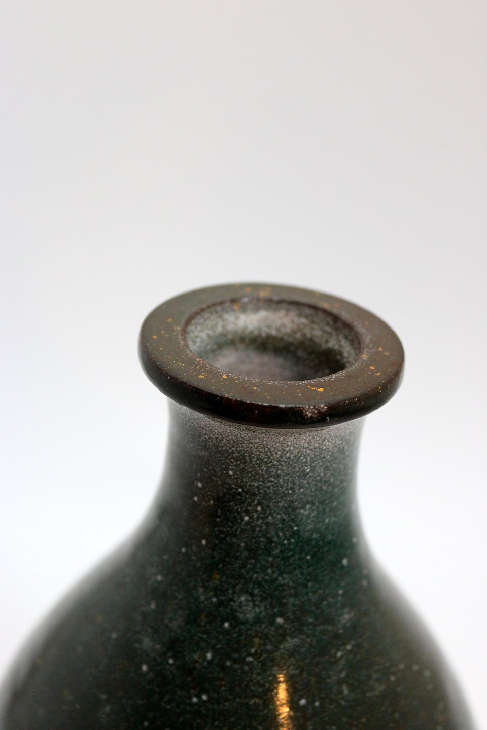 Smuk vase i grønnistret glasur med brun kant. Der er et lille glasur afslag i kanten. Signatur OJ. Højde 19 cm. Største diameter 12 cm. Pris: 350 kr.