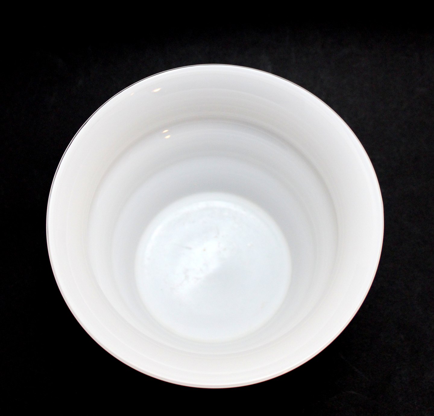 Holmegaard, Karen Blixen, Mellemstor urtepotteskjuler i opalhvid. Designet af Anja Kjær fra 2000. Højde 10,5 cm. Diameter 15 cm. Pris: 375 kr. stk. Lager: 1