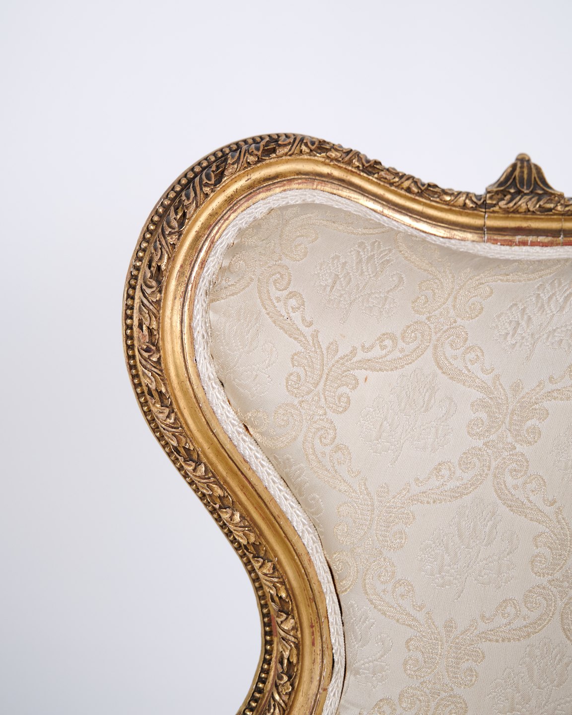 — Materiale: Forgyldt træ og lyst stof