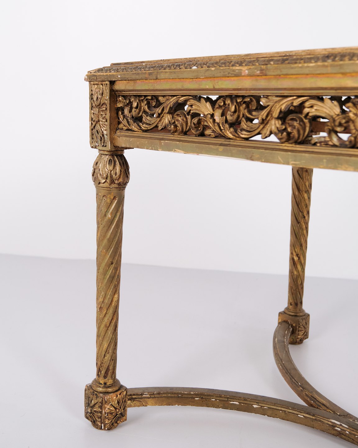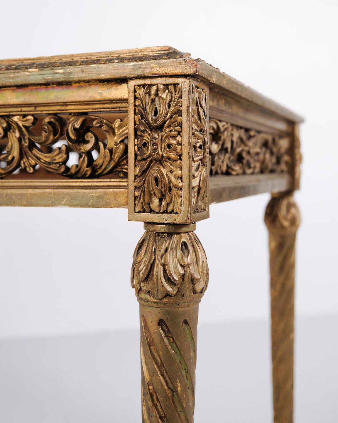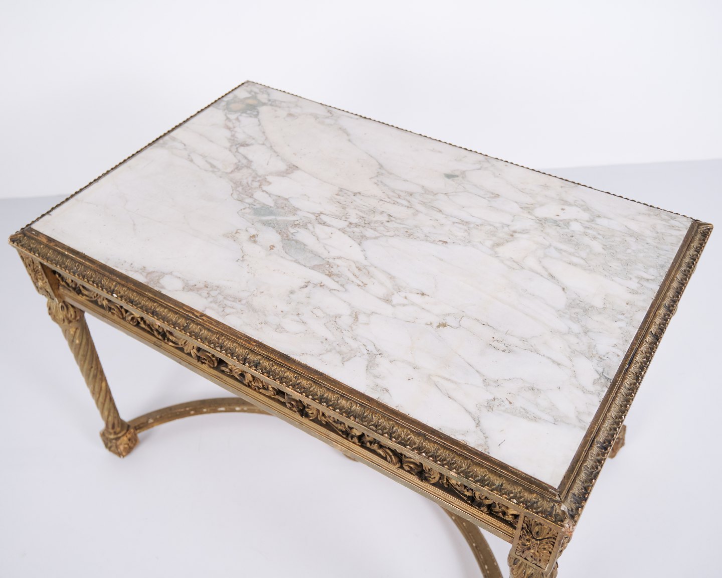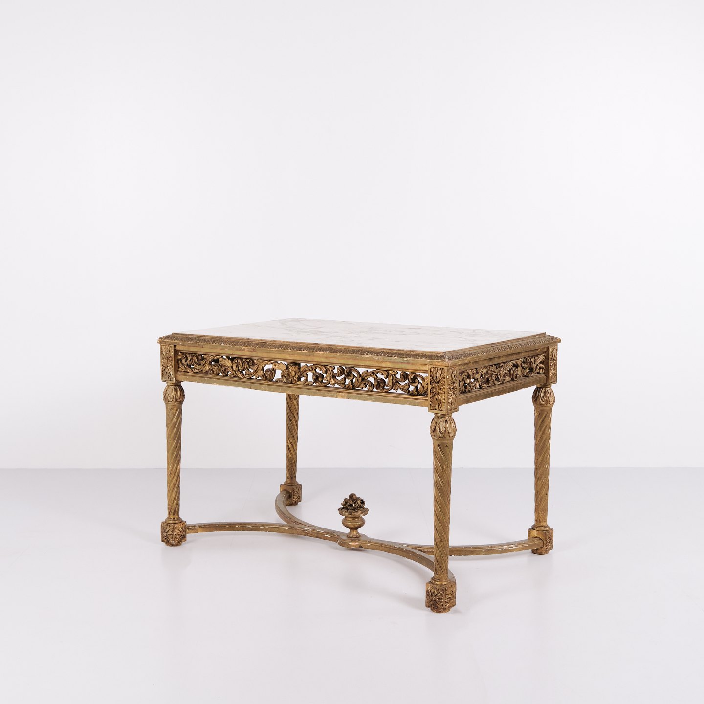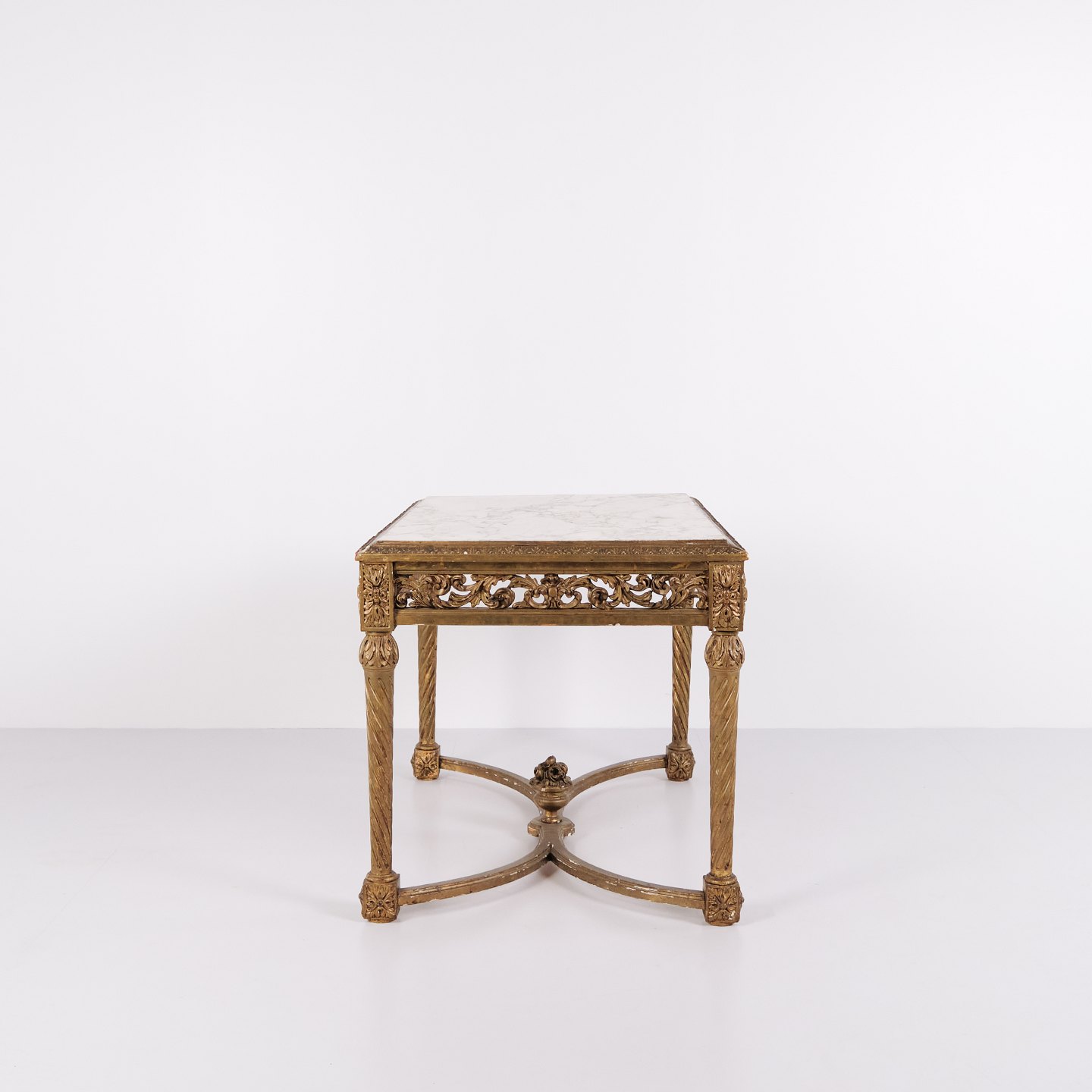 Antikt Salonbord Med Marmorplade – Detaljerede Udskæringer – Forgyldt Træ – Louis XVI-stil – År 1850erne