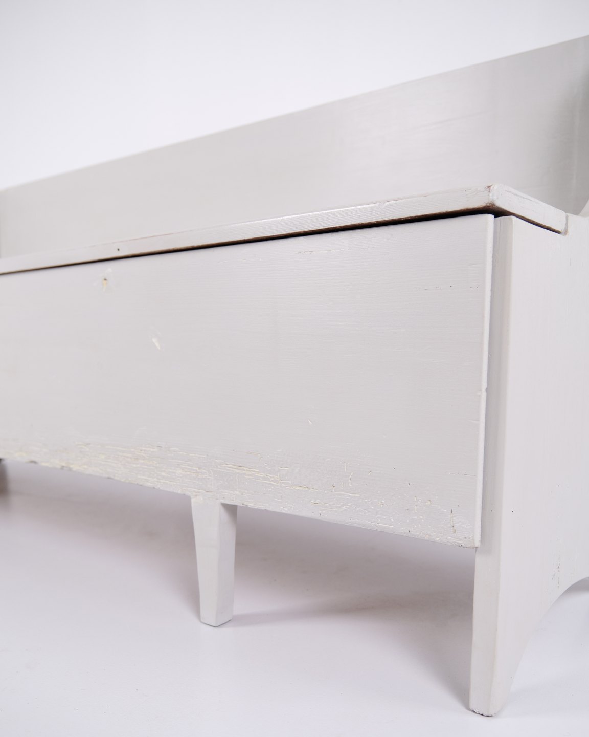 Antik Slagbænk Med Opbevaring - Gråmalet - Fyrretræ - År 1890erne