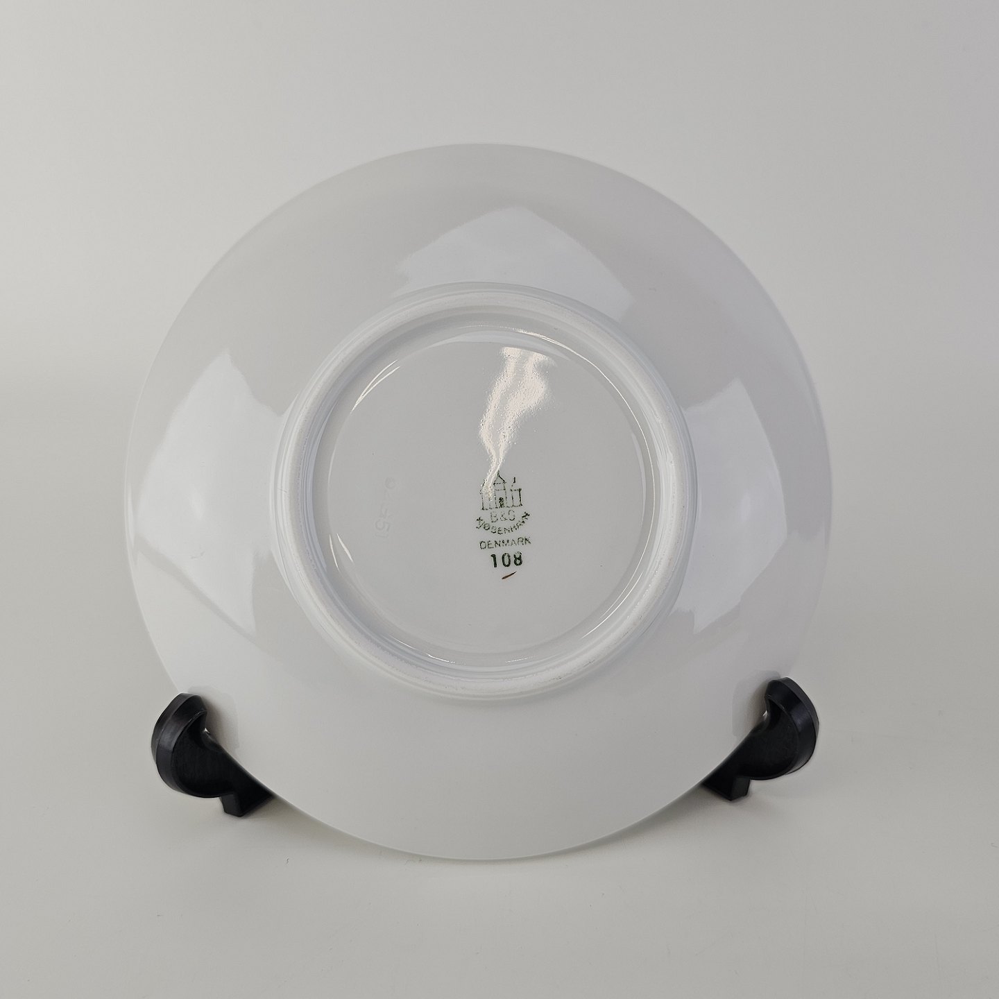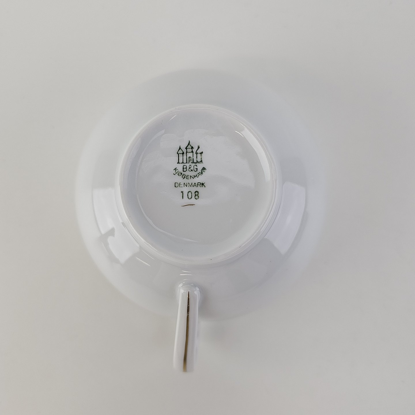 Tiber er stel i glat hvidt porcelæn med grå bort og guldkant