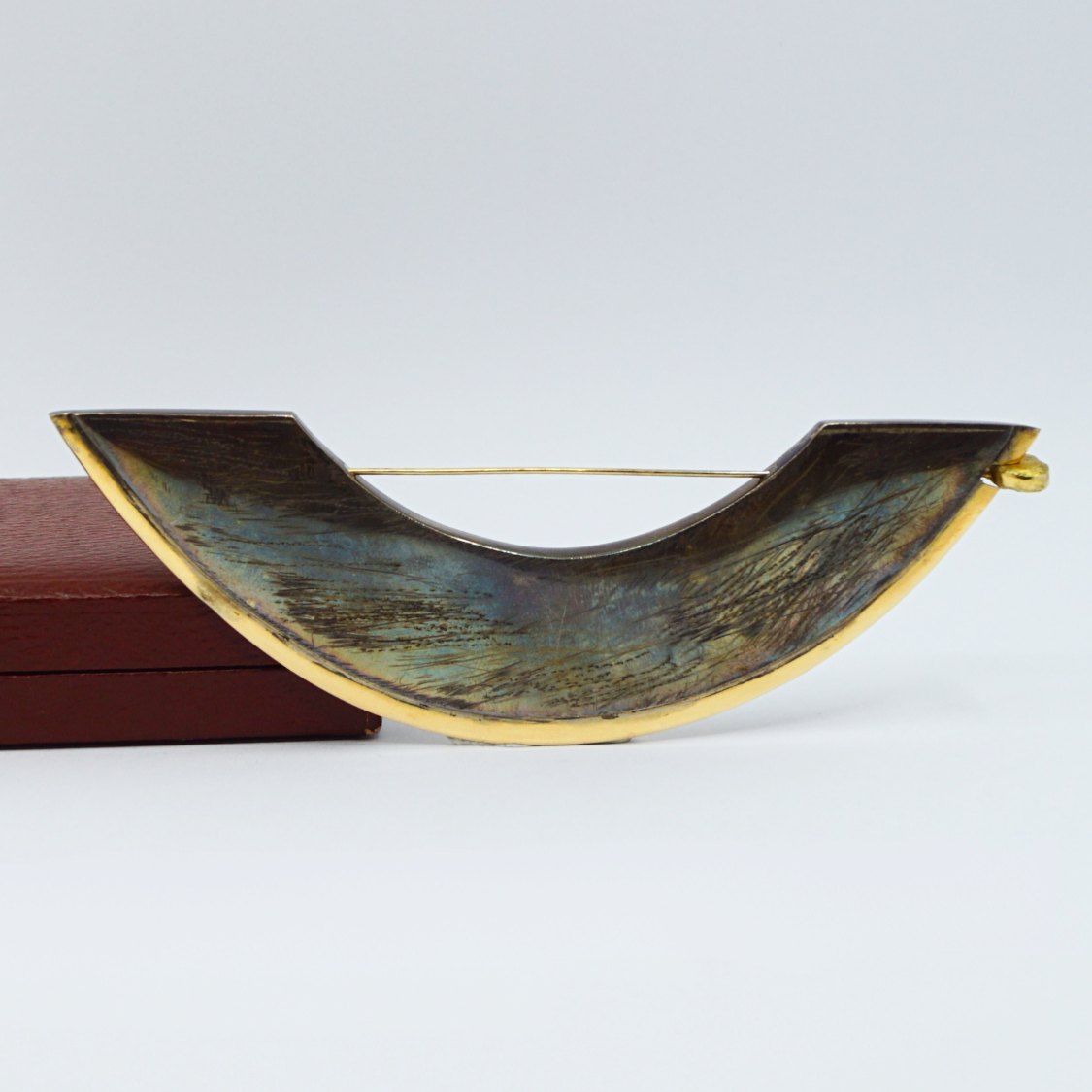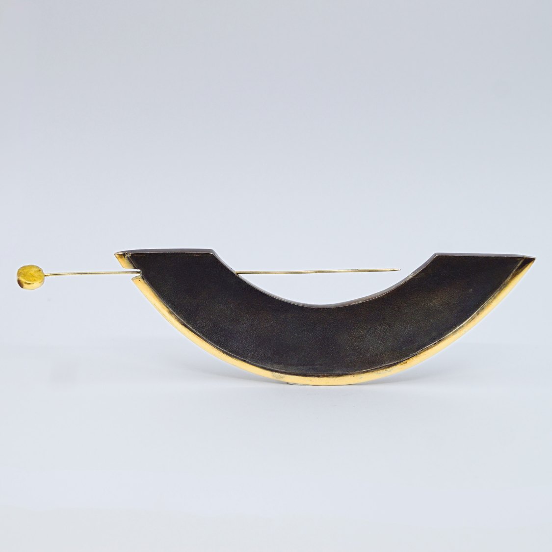 Anette Kræn; Stor kraftig sølv broche med oxideret overflade og 14 kt. guld. Kan vendes på to forskellige måder, med hver sit udtryk.