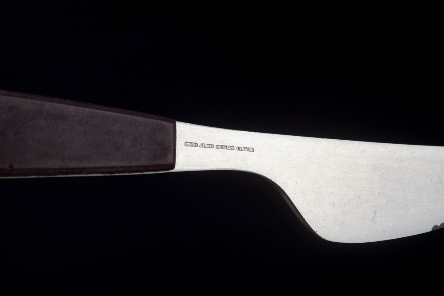 Henning Koppel (1918–1981) var en central skikkelse i dansk modernisme og kendt for sine organiske former og funktionelle tilgang til design. Hos Georg Jensen formgav han en række ikoniske bestikserier, hvor enkelhed, balance og brugsværdi er i fokus. Strata-serien afspejler denne filosofi med sit stramme formsprog og karakteristiske håndtag, skabt til daglig brug i et moderne hjem.