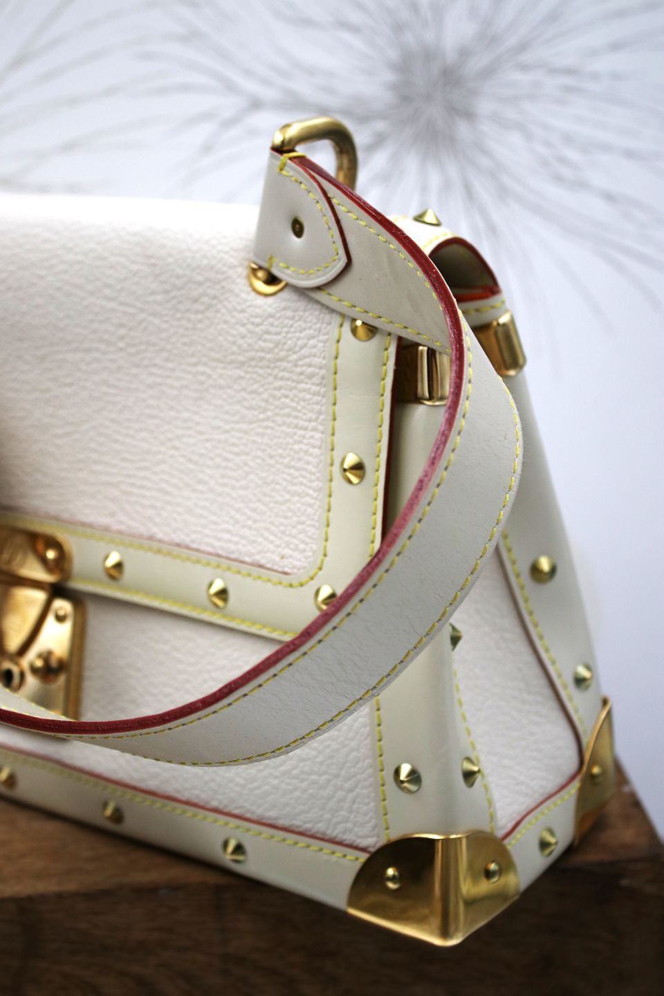 Louis Vuitton vintage taske , Suhali Le Talentueux fra 2006 i hvid læder med guldnitter og hjørneforstrækning.