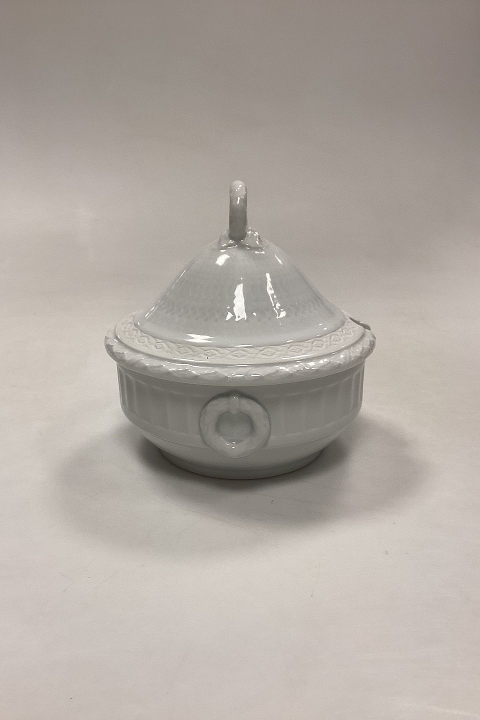 Royal Copenhagen Hvid Vifte Kompotskål med låg No. 170/171. Måler 13,5 cm x 14 cm / 5,31 in. x 5,51 in.