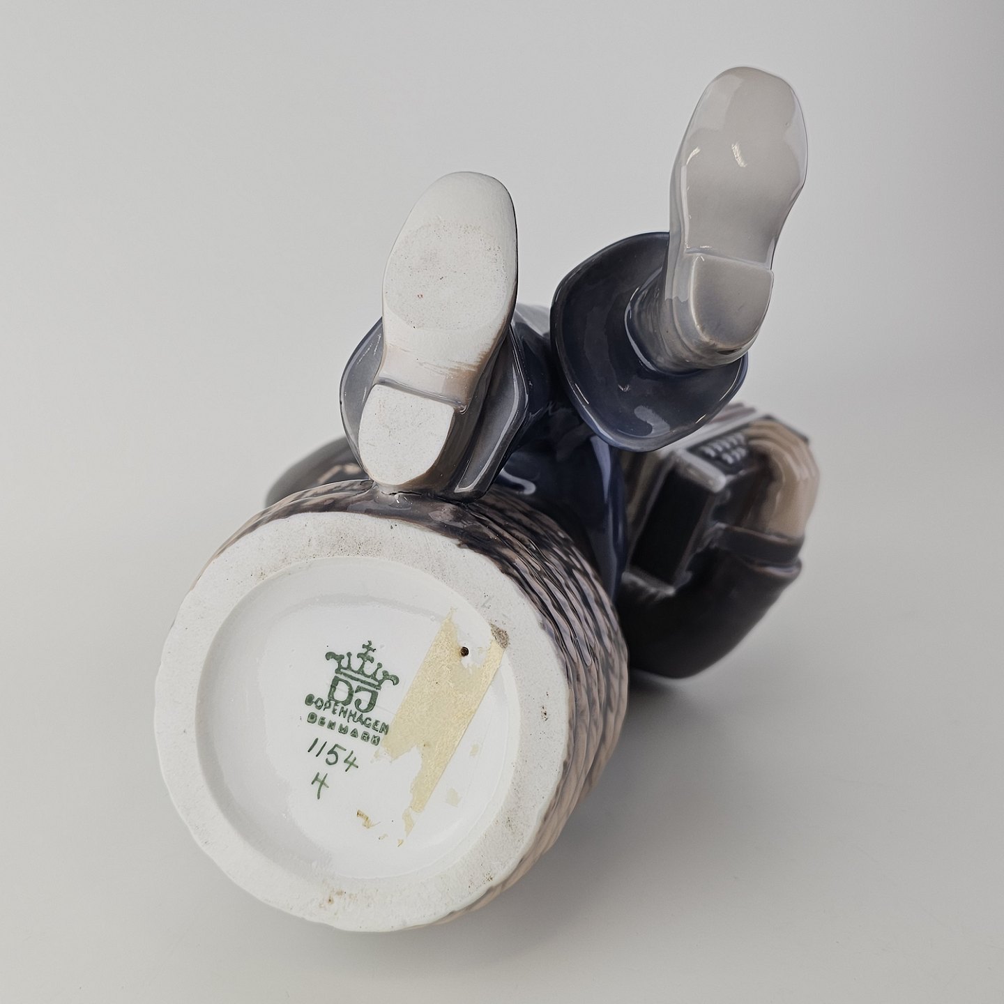 Figur i hvidt porcelæn med motiv af en dreng som spiller harmonika