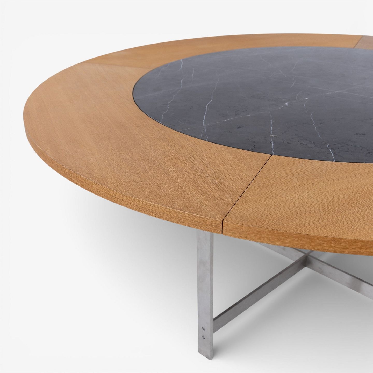 JH Spisebord med stel i stål og plade i grå marmor m. tillægsringe i olieret eg.