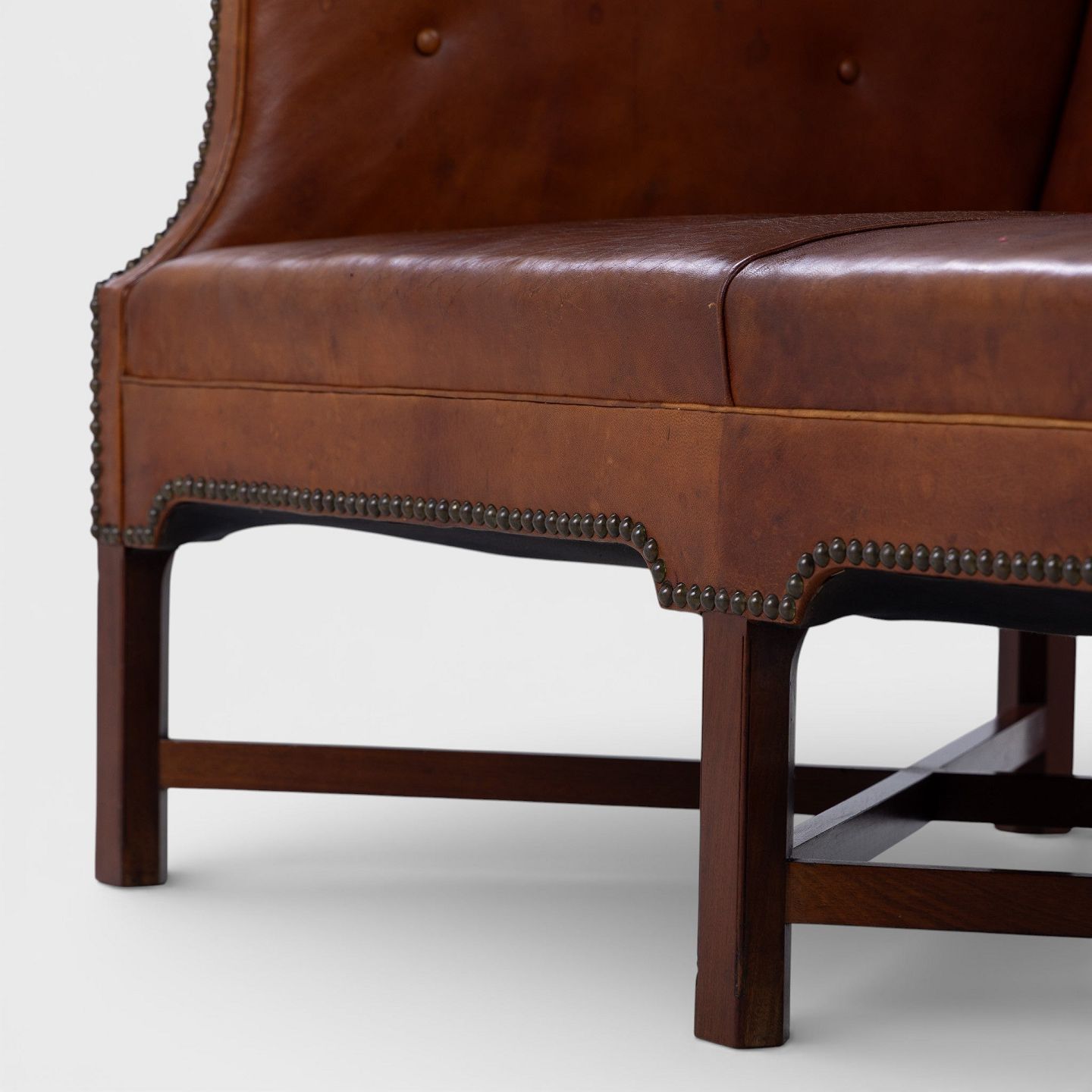 KK 4118 - 3 pers. sofa i patineret nigerskind på krydsstel i cuba-mahogni. Formgivet i 1930.