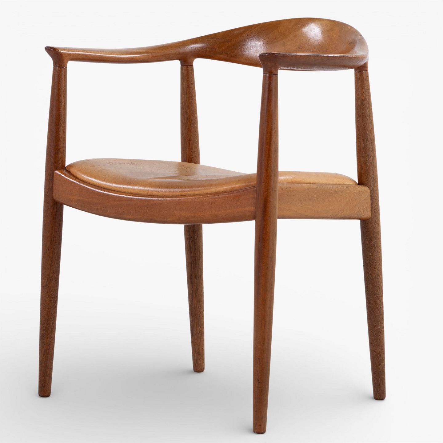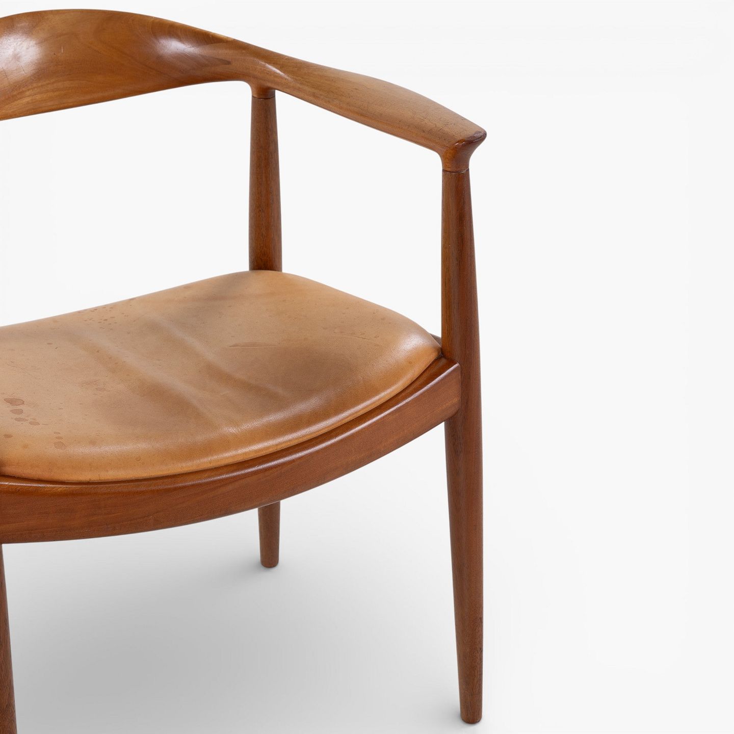 JH 503 - 'The Chair'-armstol i mahogni med sæde i patineret naturlæder. Mærket fra producent.