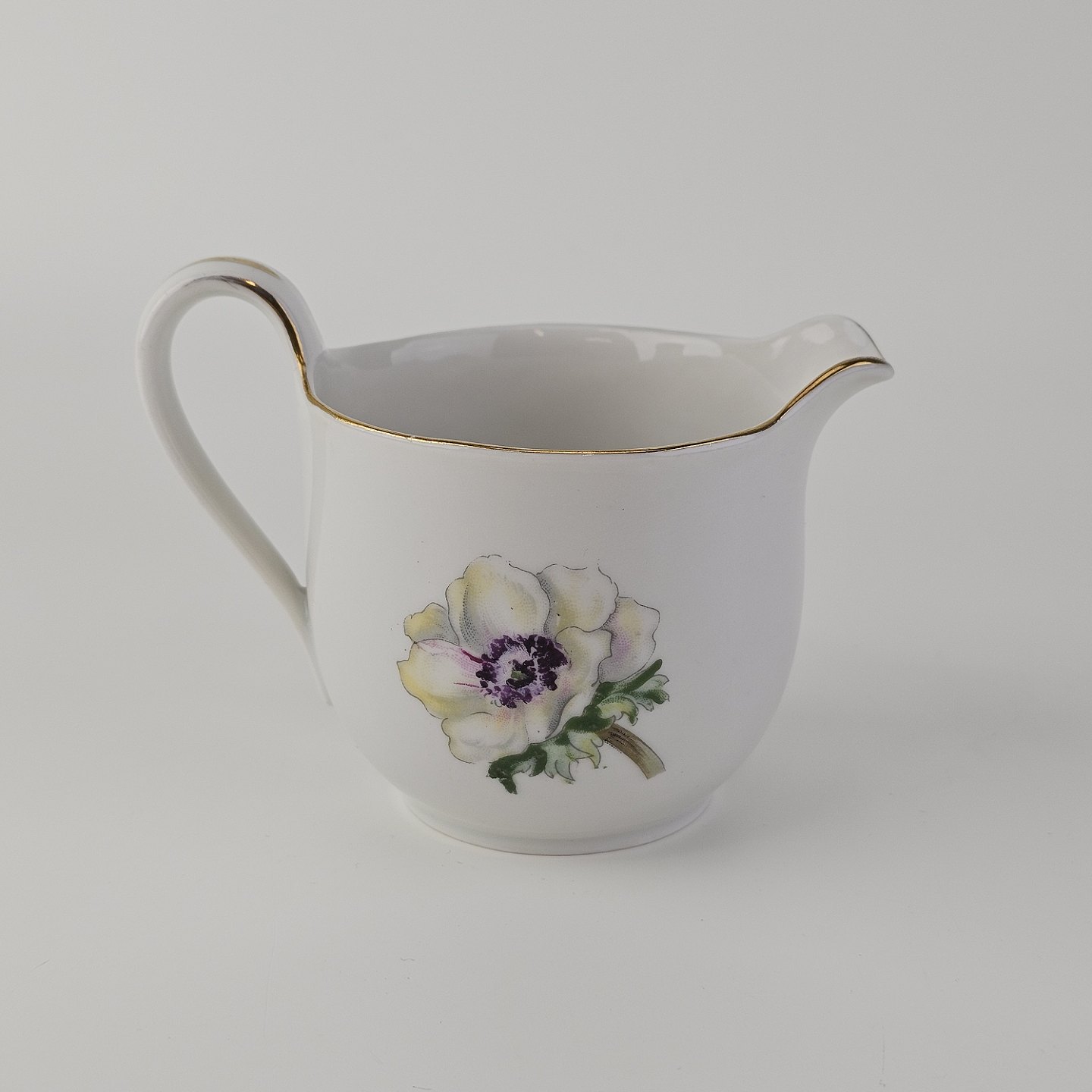 Flødekande i porcelæn fra stellet Fransk Anemone med guldkant