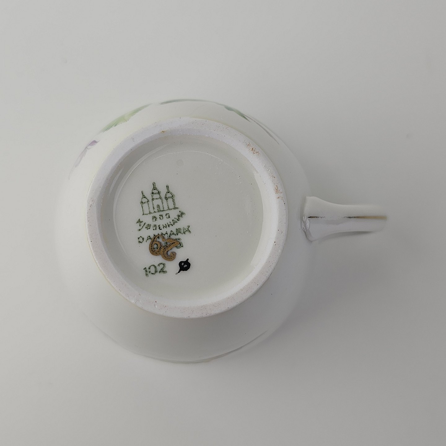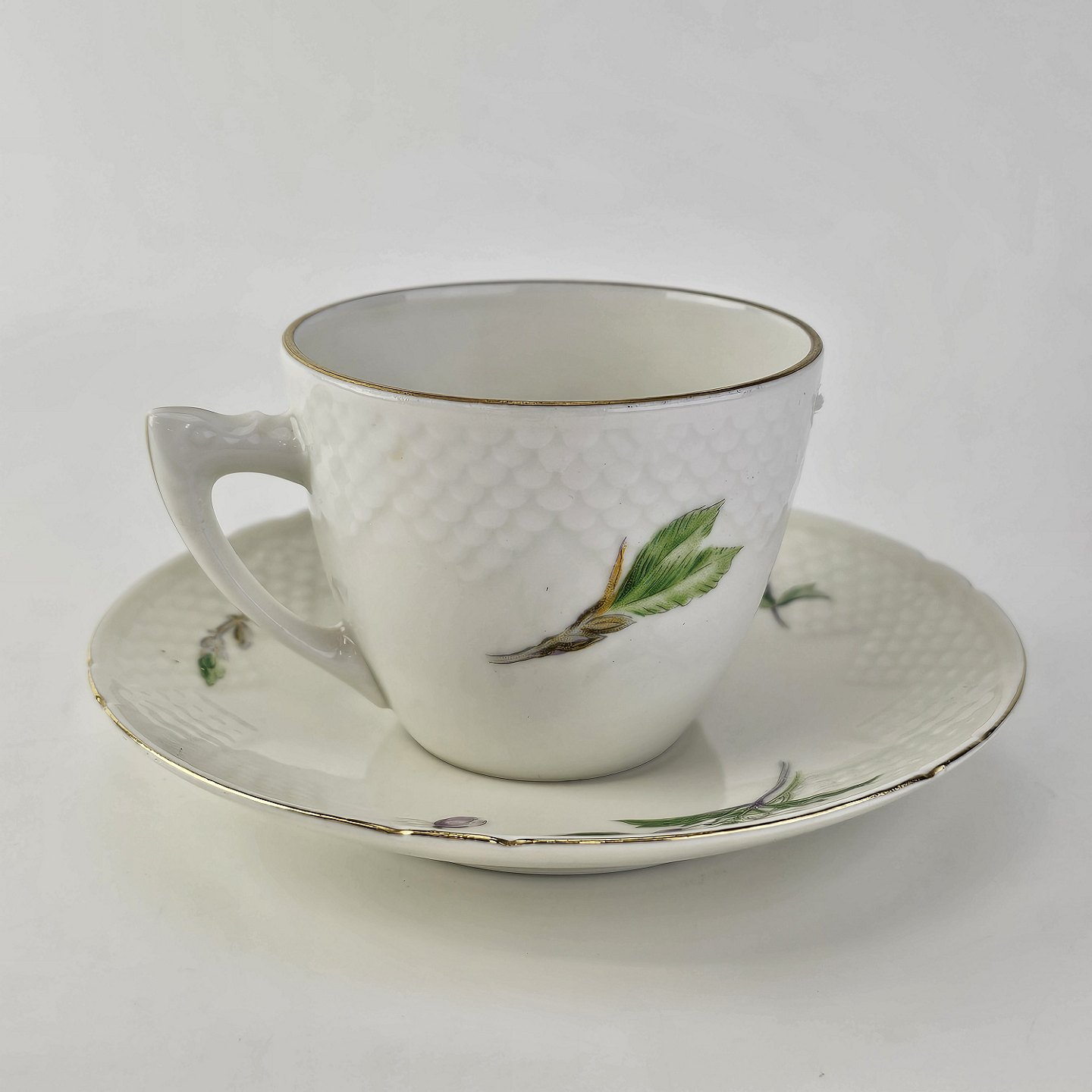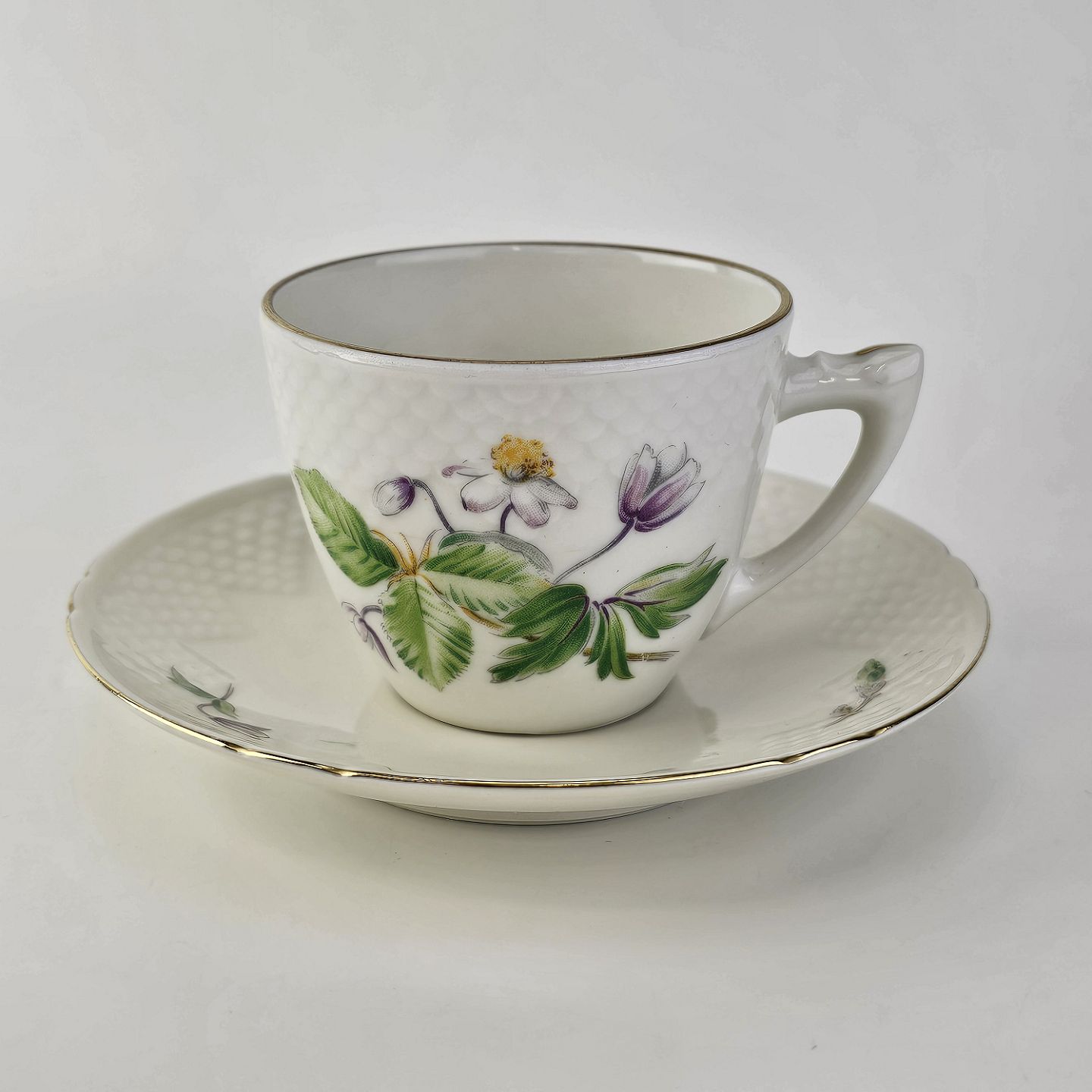 Kop med underkop i porcelæn fra stellet Frigga Anemone