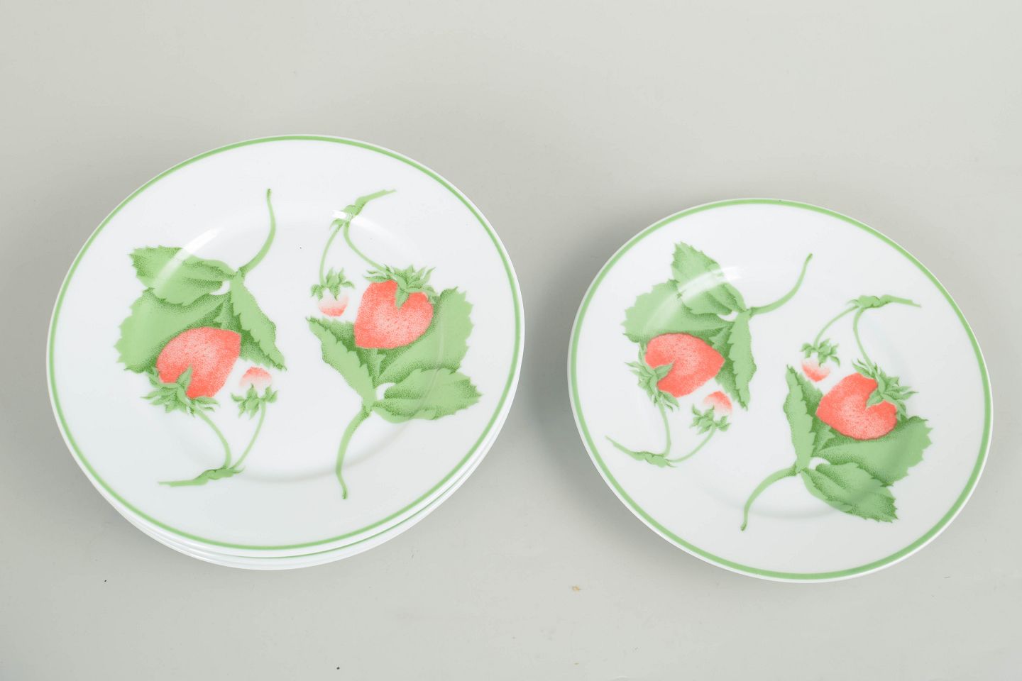 Limoges-porcelæn er kendt for sin fine kvalitet og lange tradition for dekoreret bordservice. I 1980’erne blev frugt- og blomsterdekorationer populære som et let og dekorativt udtryk til hverdags- og serveringsservice. Serien Fraise er et typisk eksempel på denne stil med sit naturalistiske motiv og enkle grønne kant.