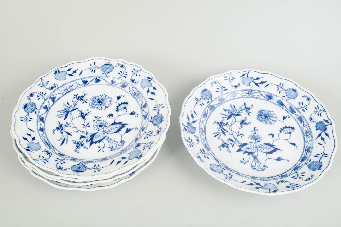 Meissen, sæt på 5 dybe tallerkener, Løgmønster.
