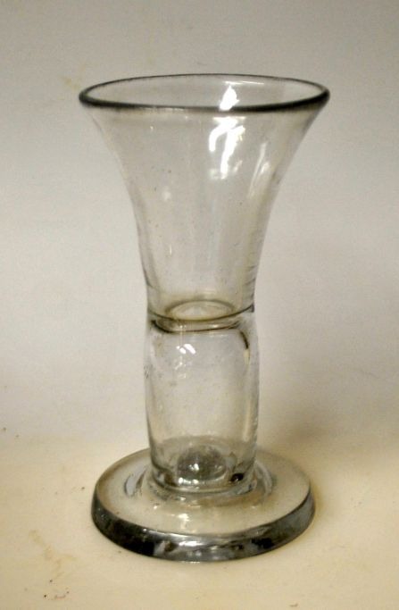 Frimurerglas. 19. årh. Danmark. Klart glas med hul stilk. Dia.: 6,5 cm. H.: 12,0 cm.