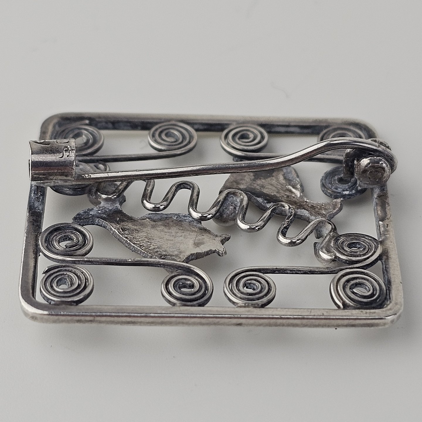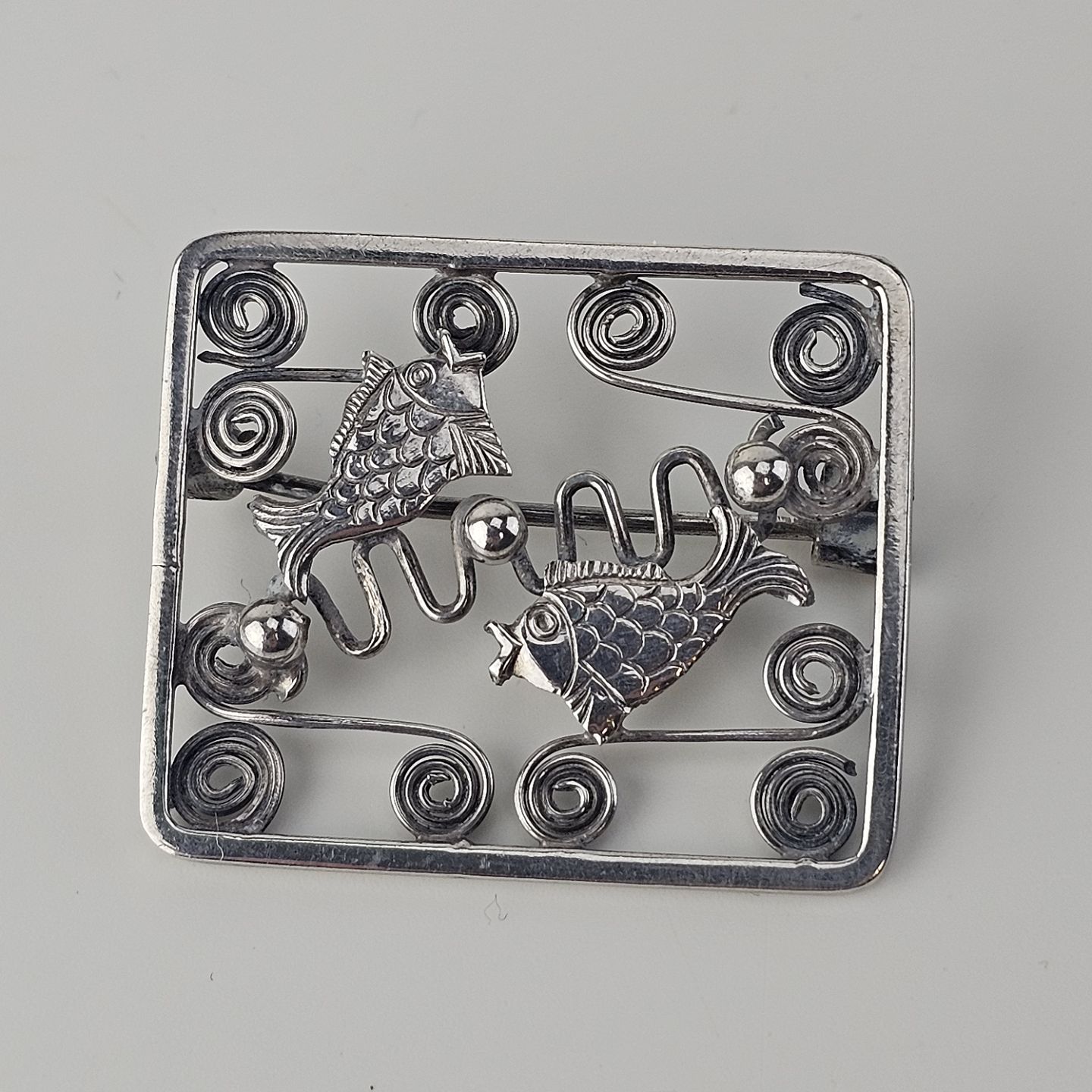 Broche i sølv med motiv af fisk