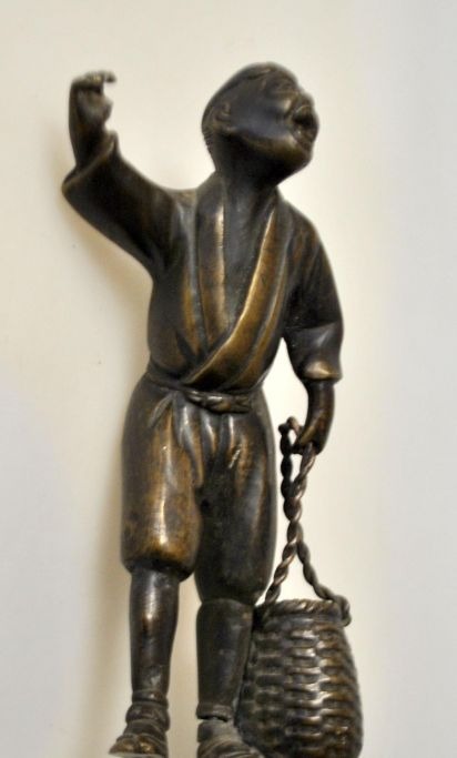 Kinesisk bronzefigur af dreng med kruv, 19. årh.