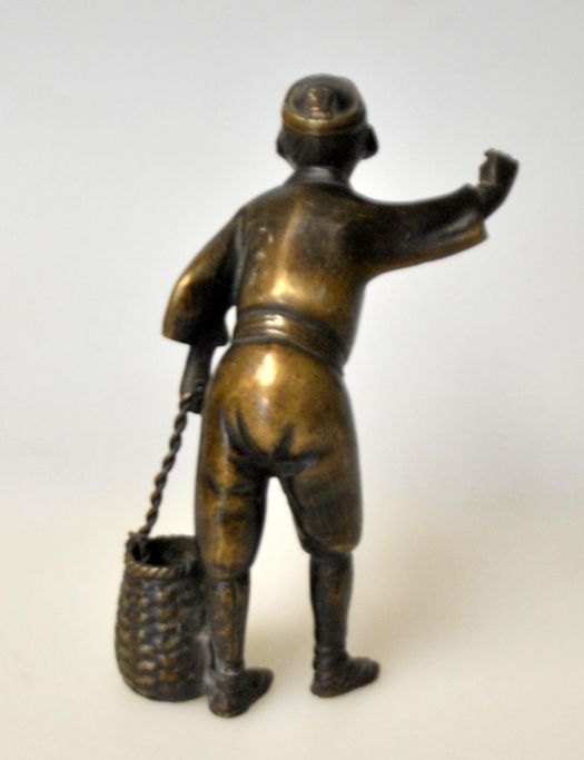 Kinesisk bronzefigur af dreng med kruv, 19. årh. Usigneret. H.: ca. 12 cm.