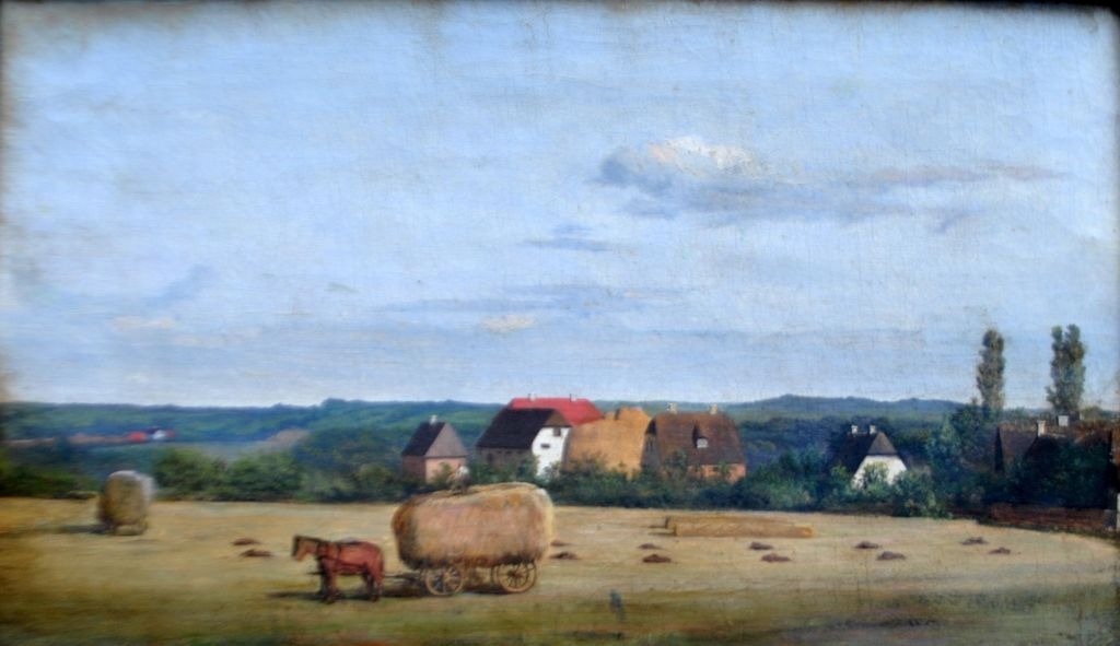 Rademacher, Niels Grønbek (1812 - 1885) Denmark: Harvest scene from a Zealand manor.