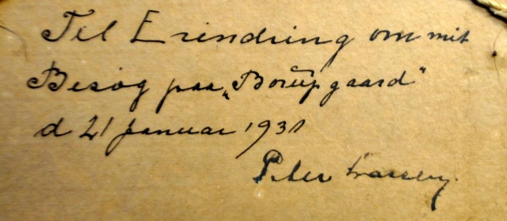 Verso beskrivelse: Til Erindring om mit Besøg på "Borupgaard" den 21. Januar 1931. Underskrivet Peter Lassen.