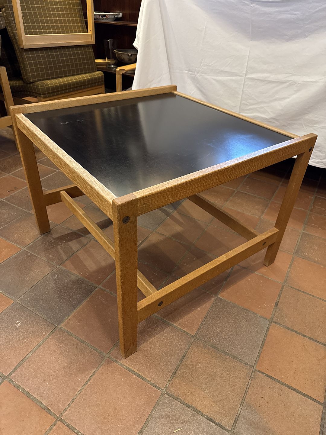 Børge Mogensen sofabord model 5376. Udført med stel af eg samt plade af sort Formica. Fremstillet hos Frederica Stolefabrik 1968.