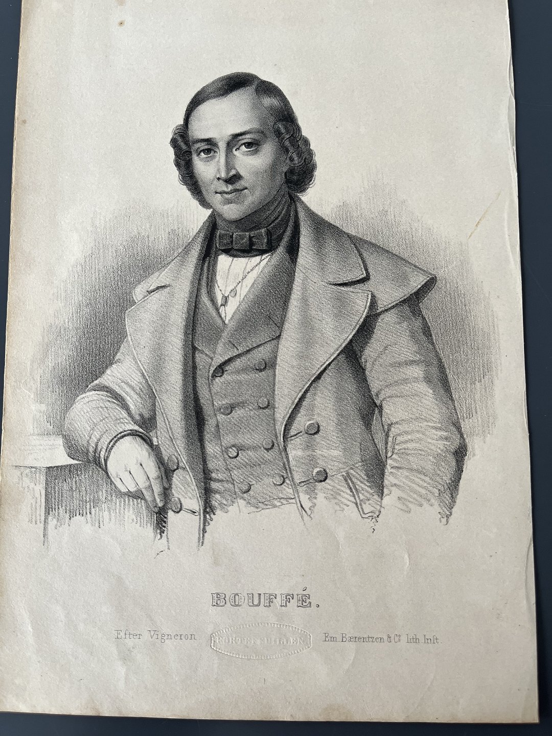 Litografi af Em. Bærentzen - Portræt af den franske skuespiller Hugues Bouffé.