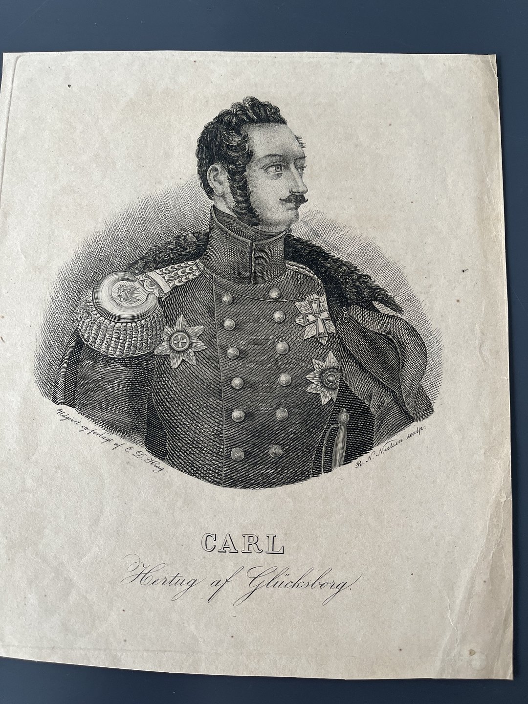 Litografi af Rasmus Nicolai Nielsen - Portræt af Hertug Carl af Slesvig-Holsten-Sønderborg-Glücksborg.