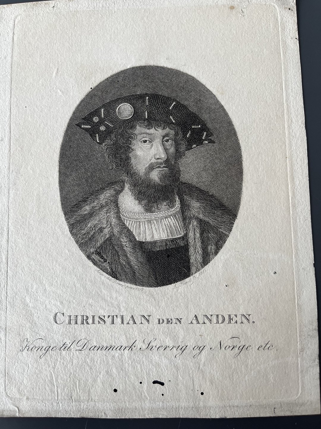 Portræt af HM Kong Christian II af Danmark, Norge og Sverige 1815.