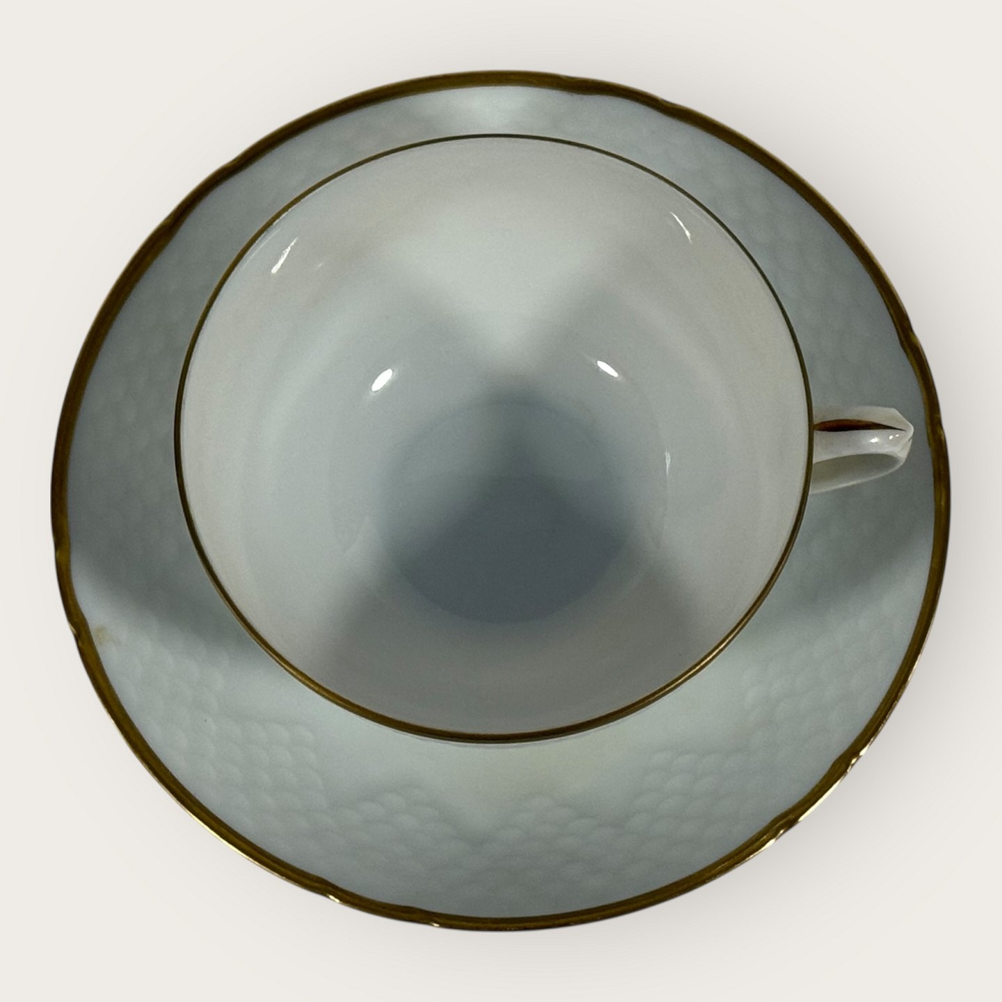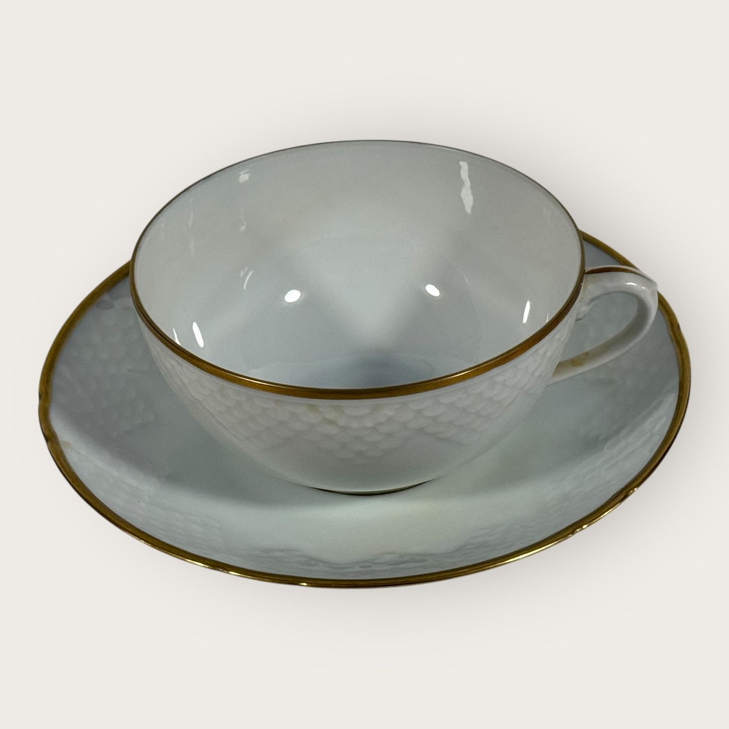 Bing & Grøndahl, Aakjær, Hvid porcelæn med guldkant, Tekop sæt #108, 5cm høj, 10cm i diameter, 1.sortering *Pæn stand*
