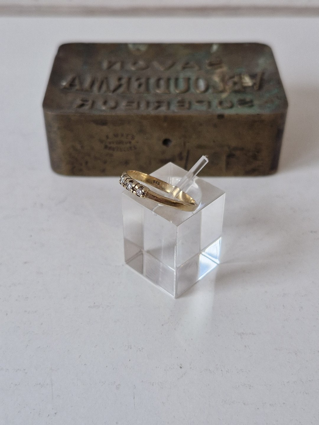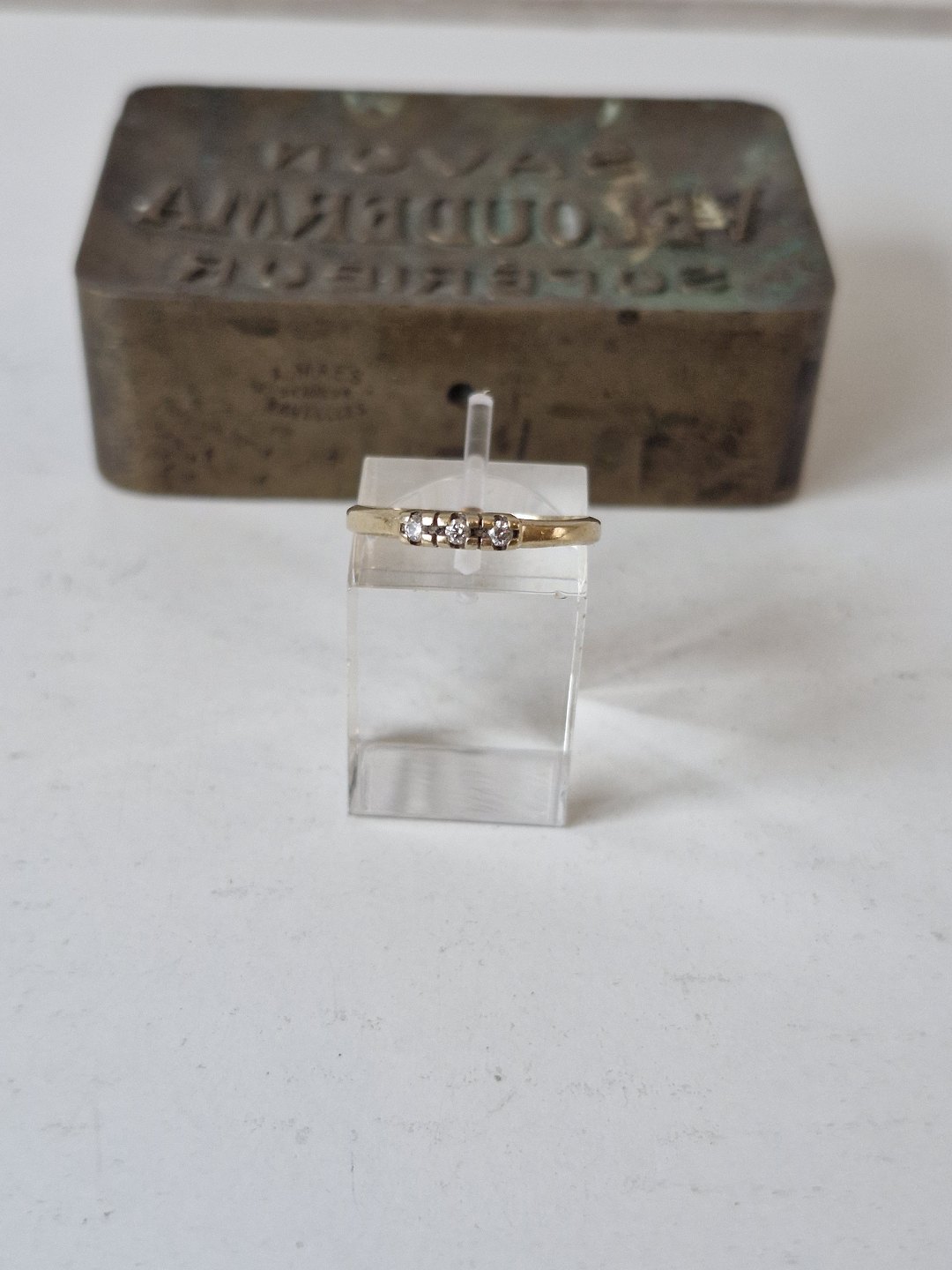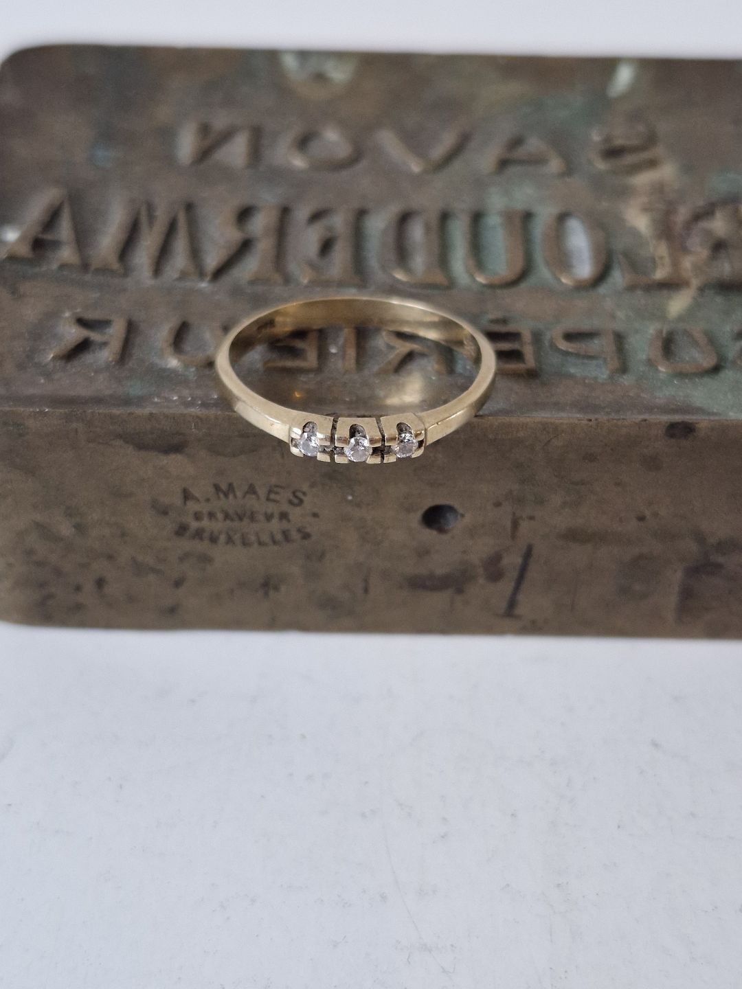 Vintage alliancering i 14 kt guld med 3 små brillanter