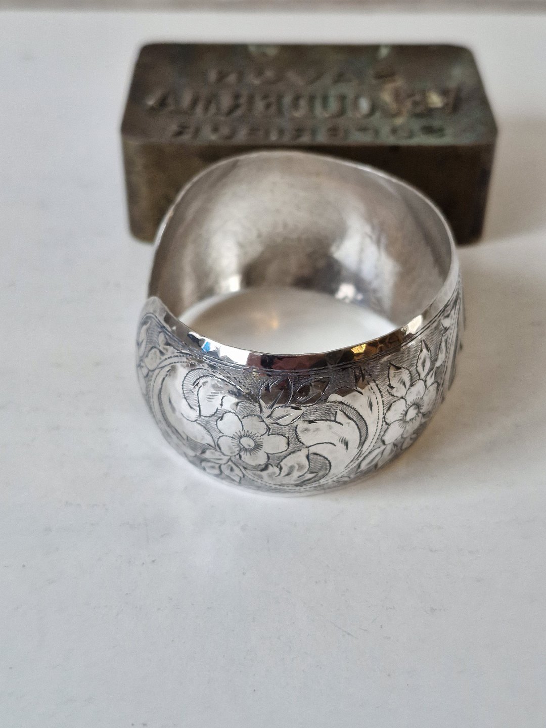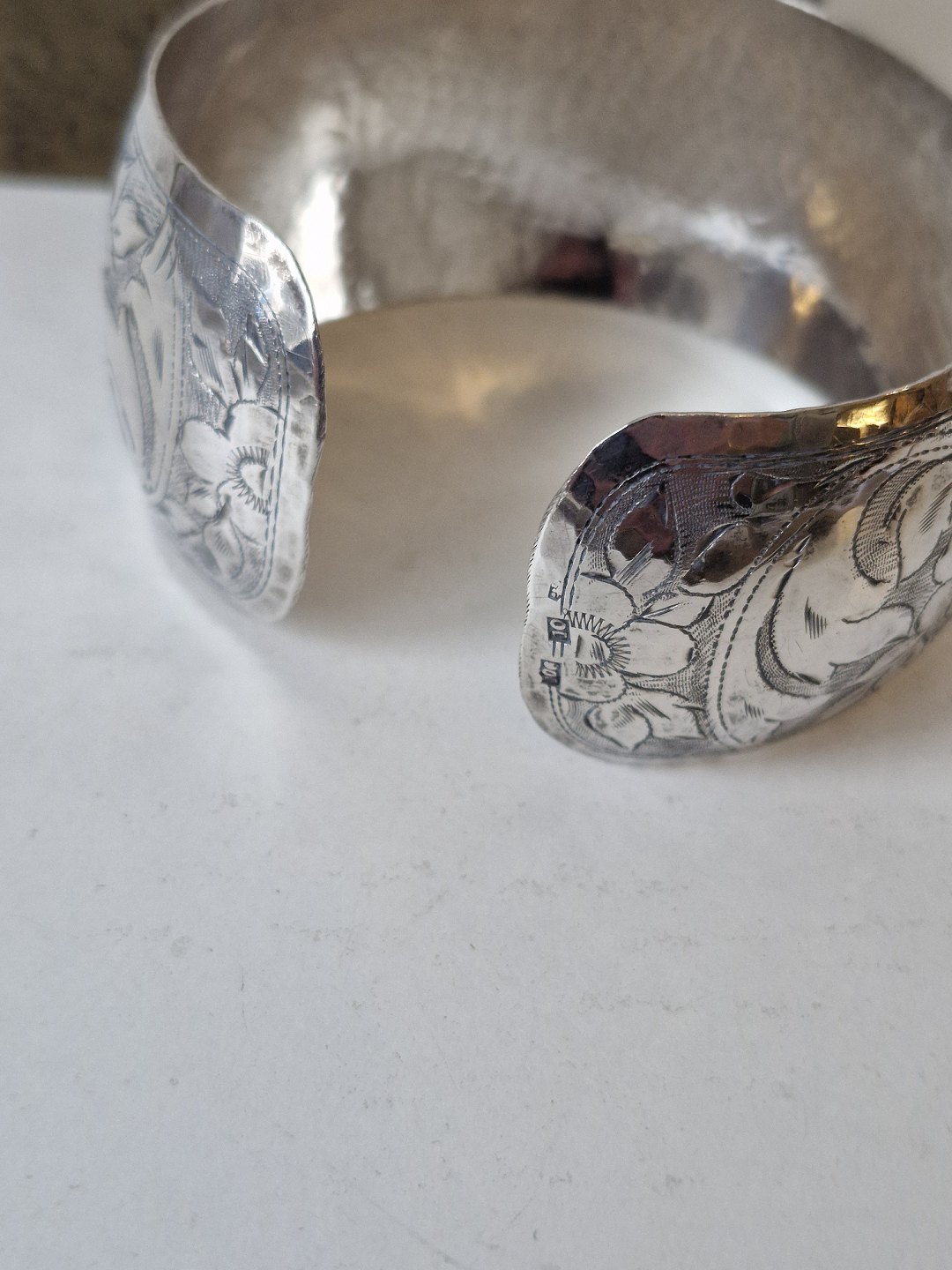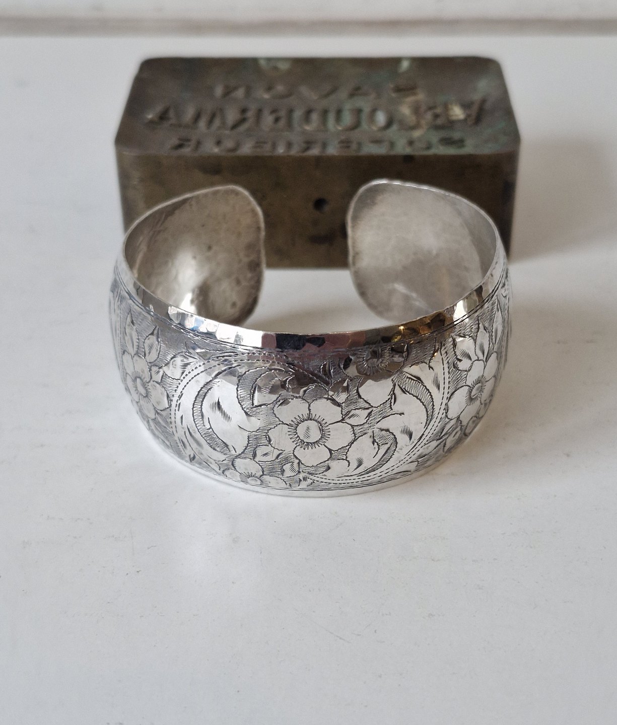 Vintage silver bangle, beautifully chiseled floral motif |