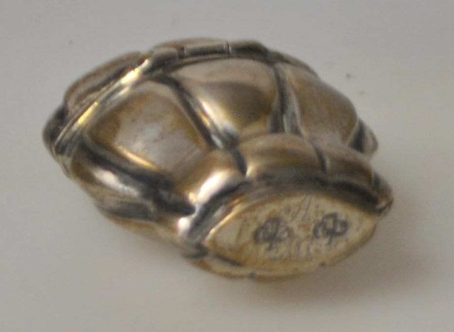 Dansk sølvsmed (18. årh): Ligeknækket rococo hovedvandsæg i sølv med krone. Indvendig lueforgyldt. Med gravering: på bund: AM. Stemplet: LTL i kløver. H.: 6,6 cm.