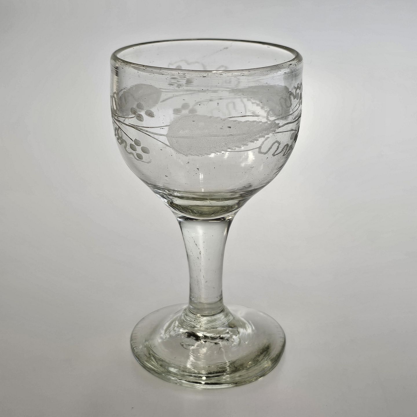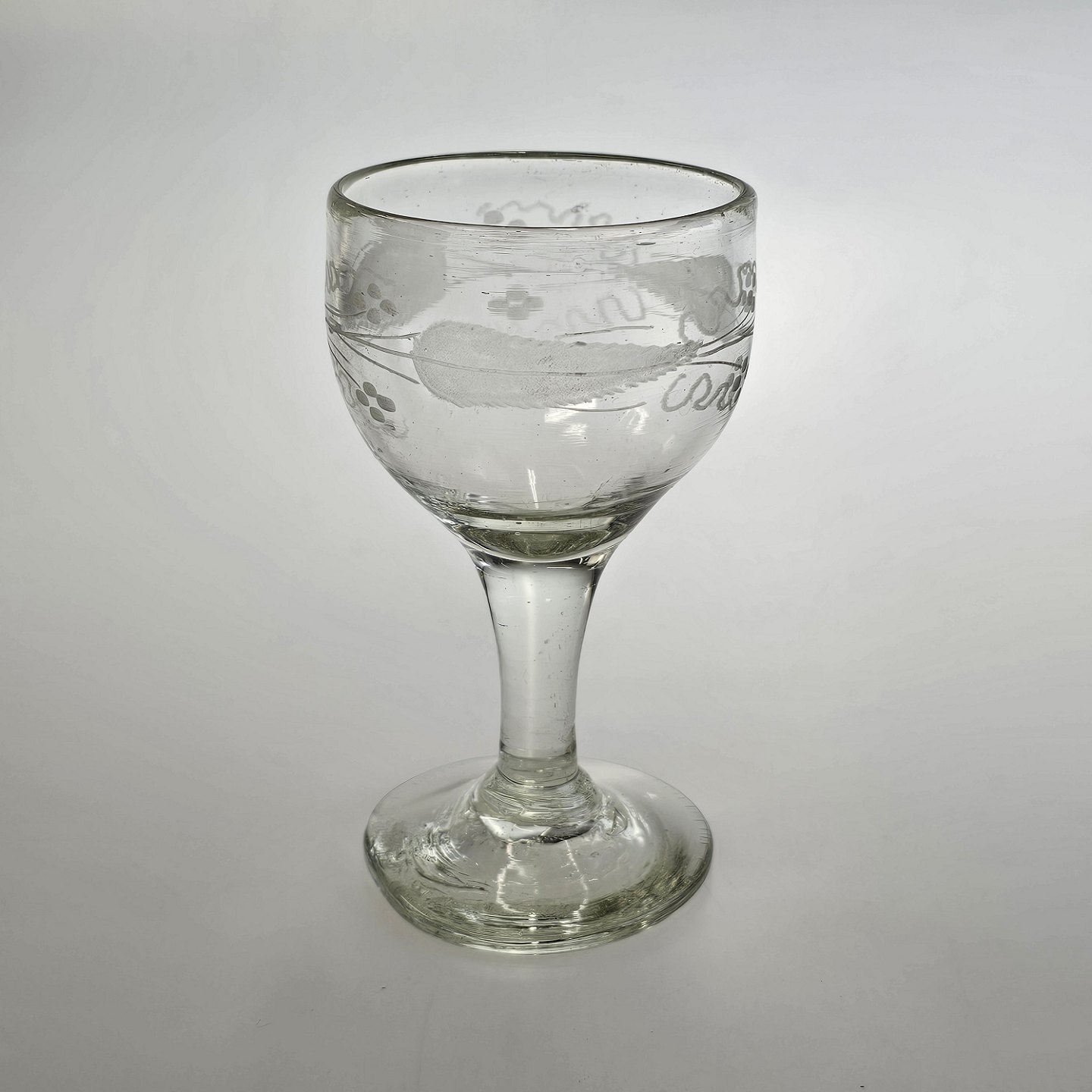Håndblæst vinglas med spidsbladet løvslibning