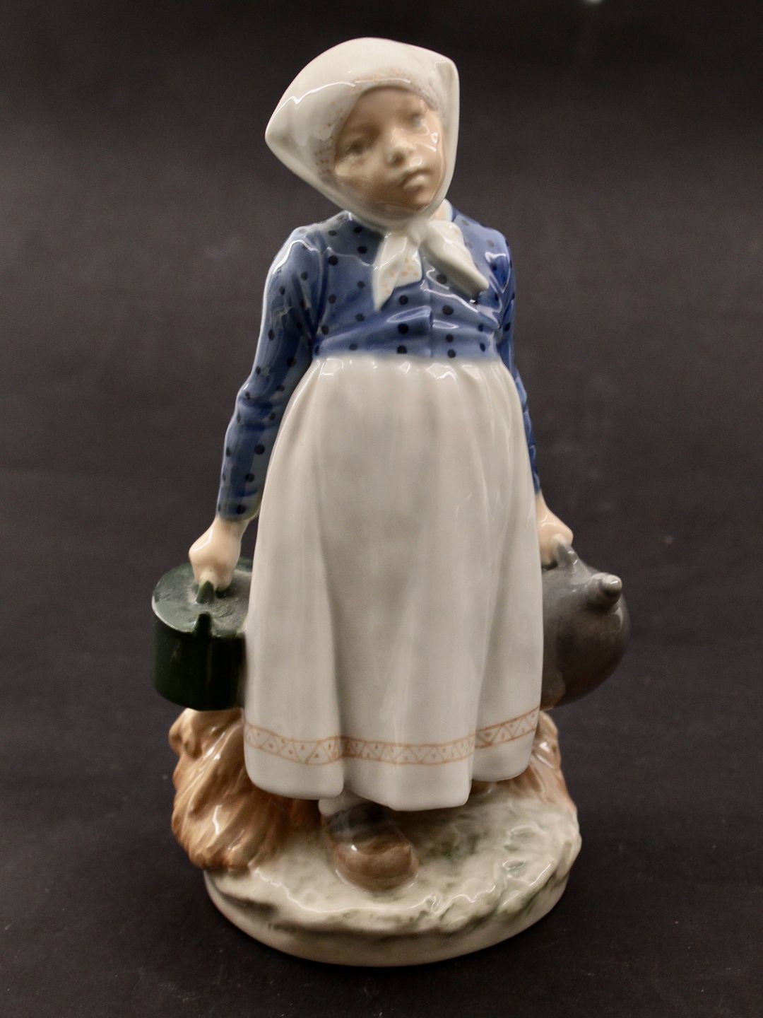 Royal Copenhagen, Bondepige 815 med frokost, dunk og tejne. Designet af Christian Thomsen. H. 21,5 cm. emne nr. 631518