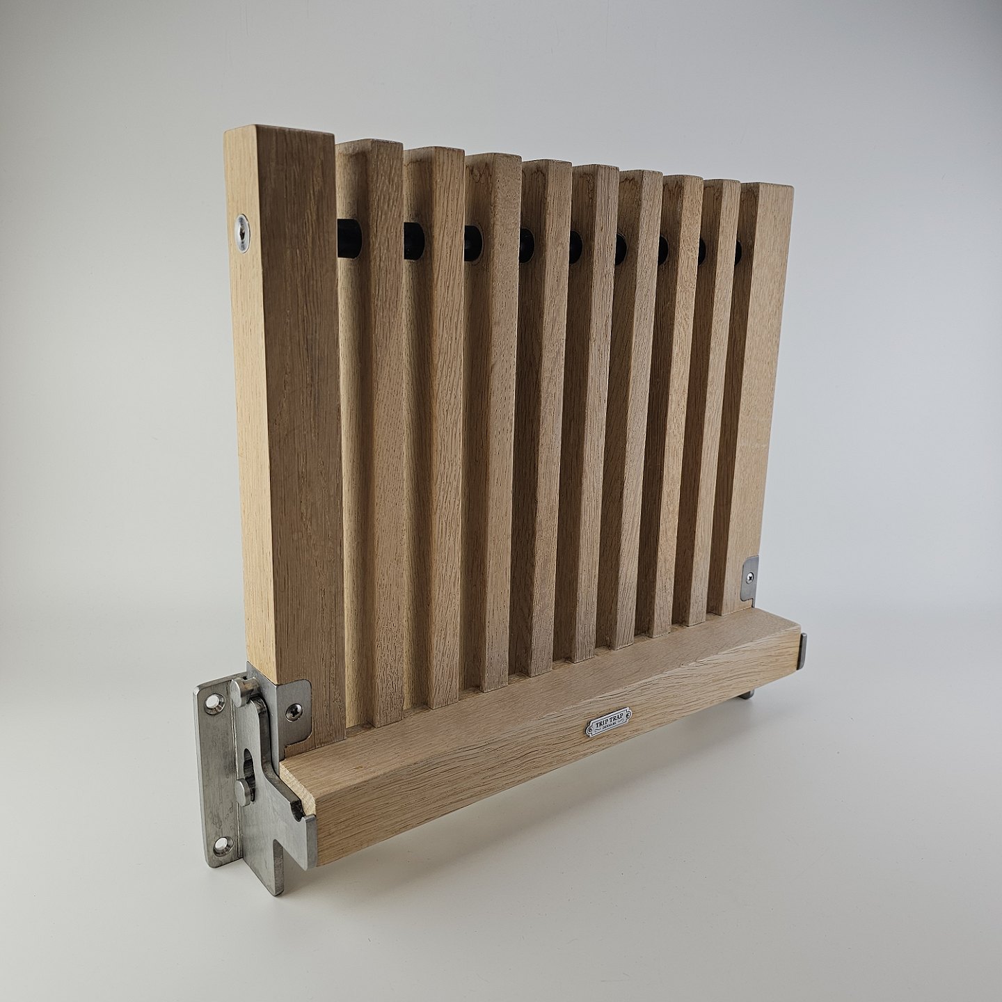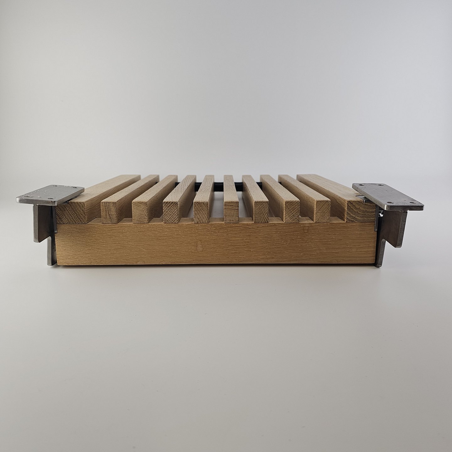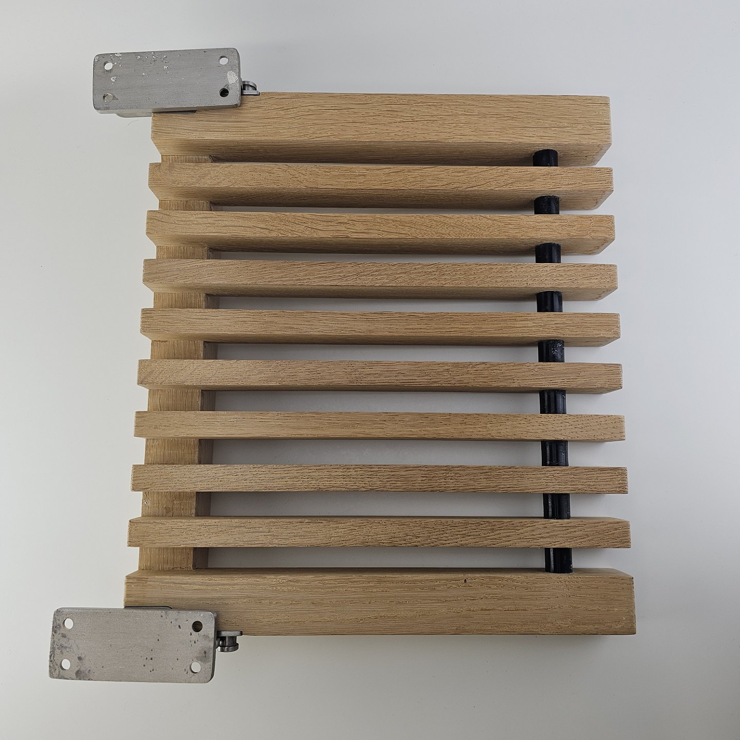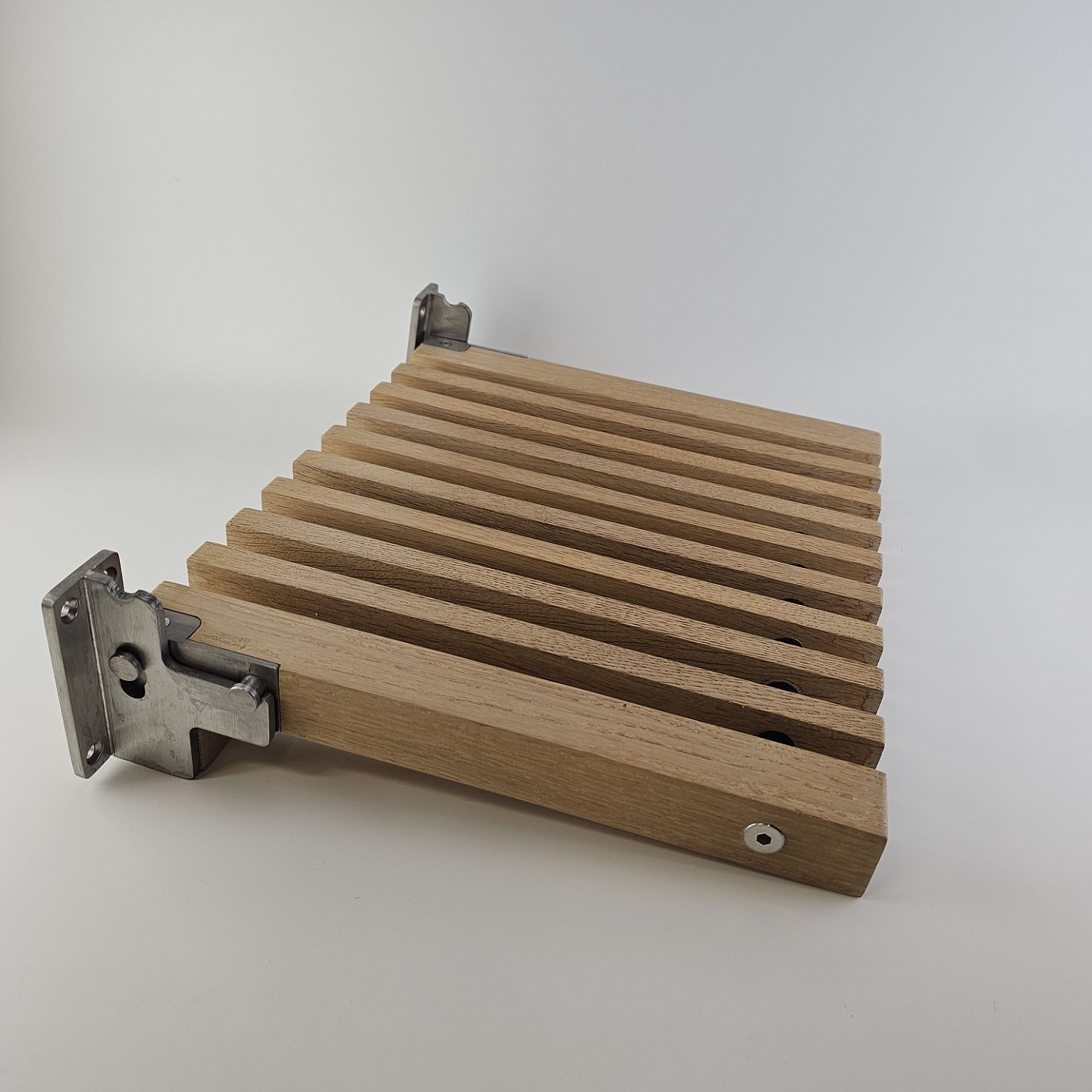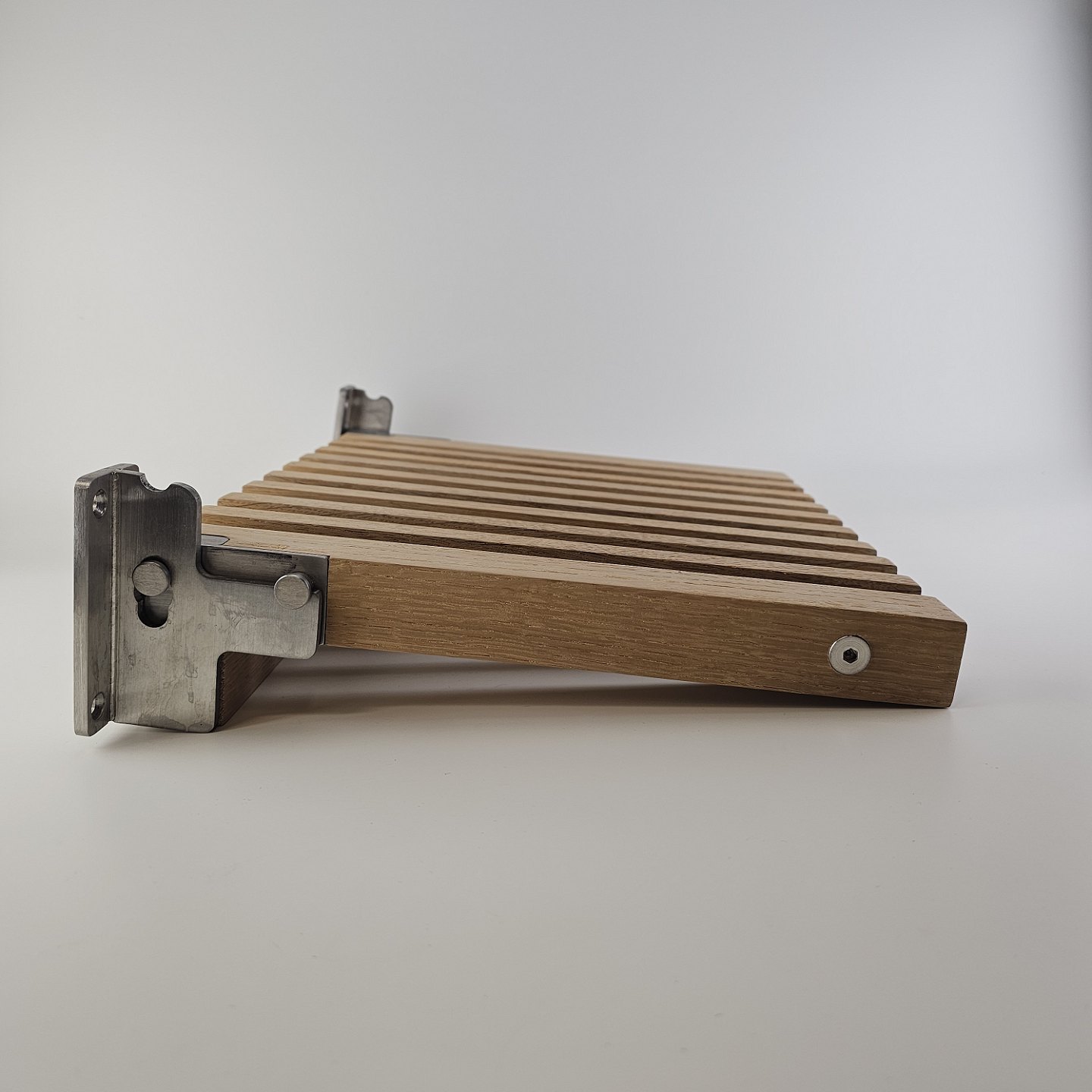 Klapsæde i eg med beslag til vægophæng