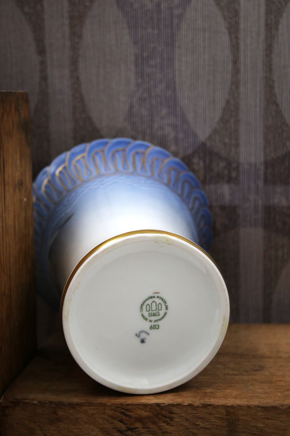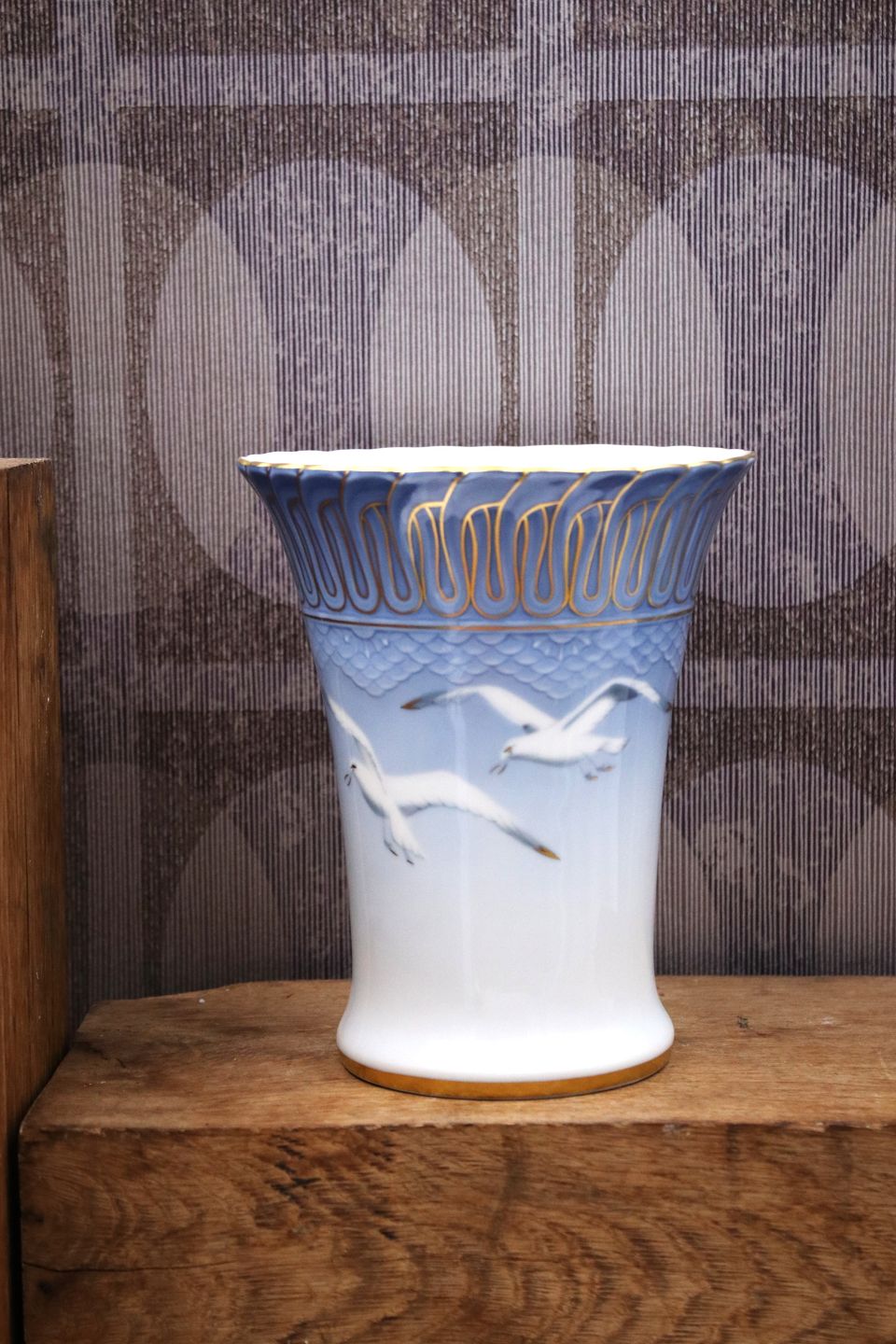 Bing & Grøndahl - B&G vase i mågestellet med guld dekorationer.